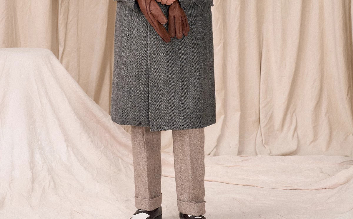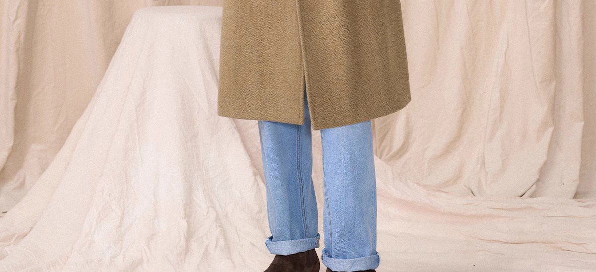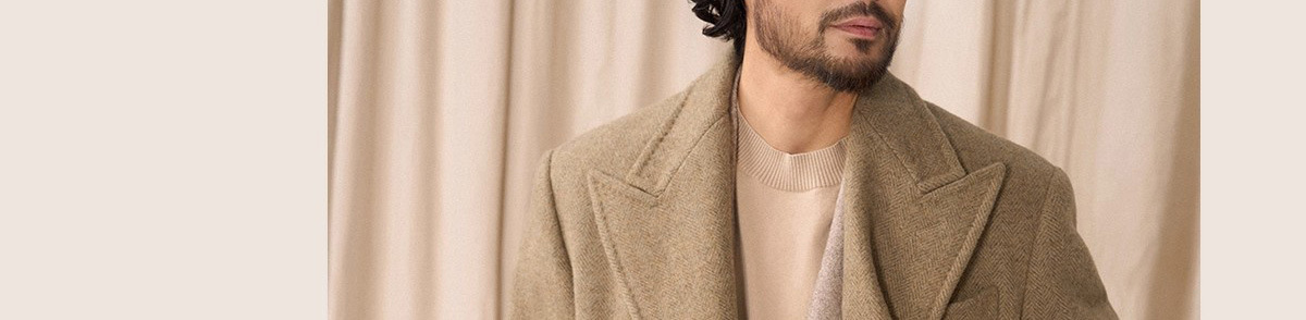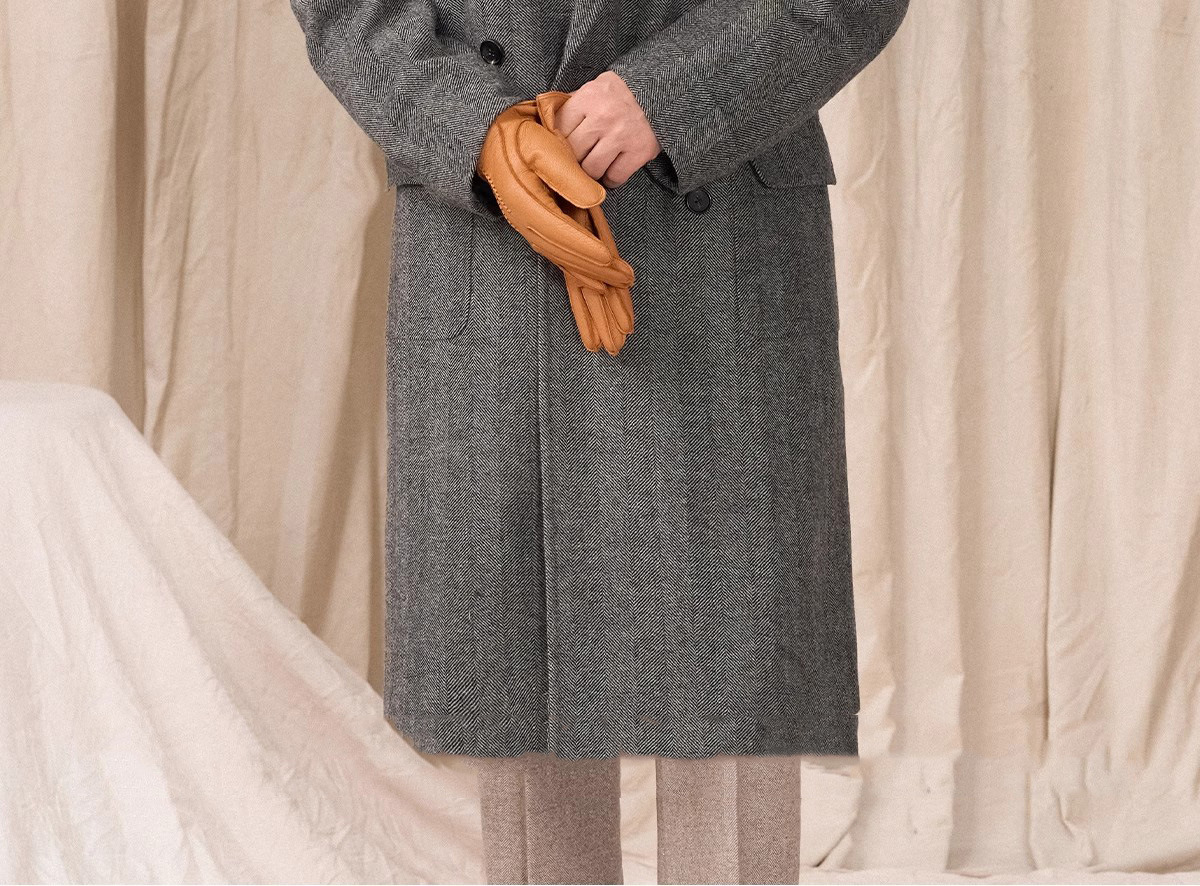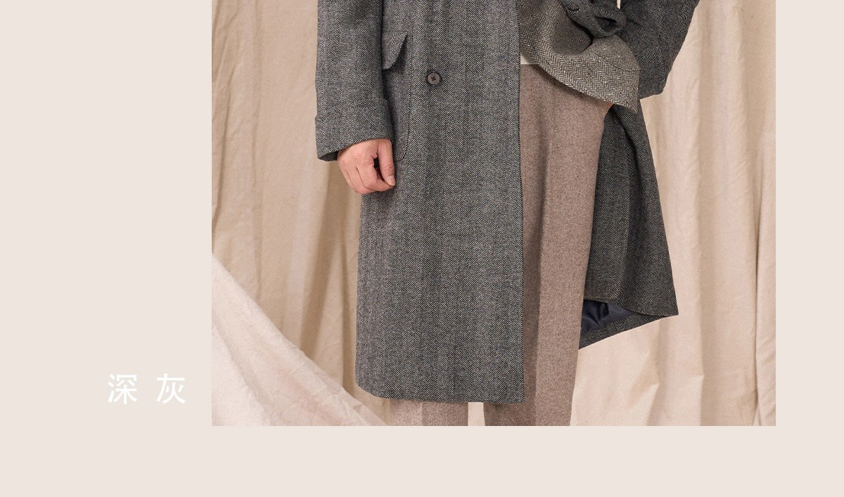 秋の冬のウールの両面ですね。コートの男性のショートタイプがゆったりしています。