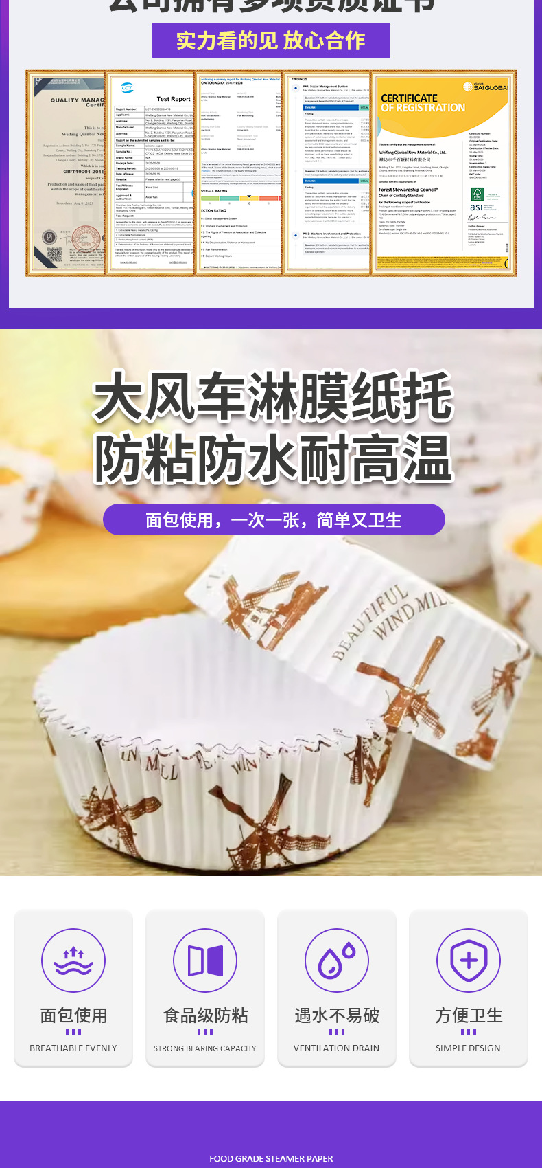 千百供应大风车淋膜纸托 菠萝包面包纸托 圆形船型防油蛋糕纸杯