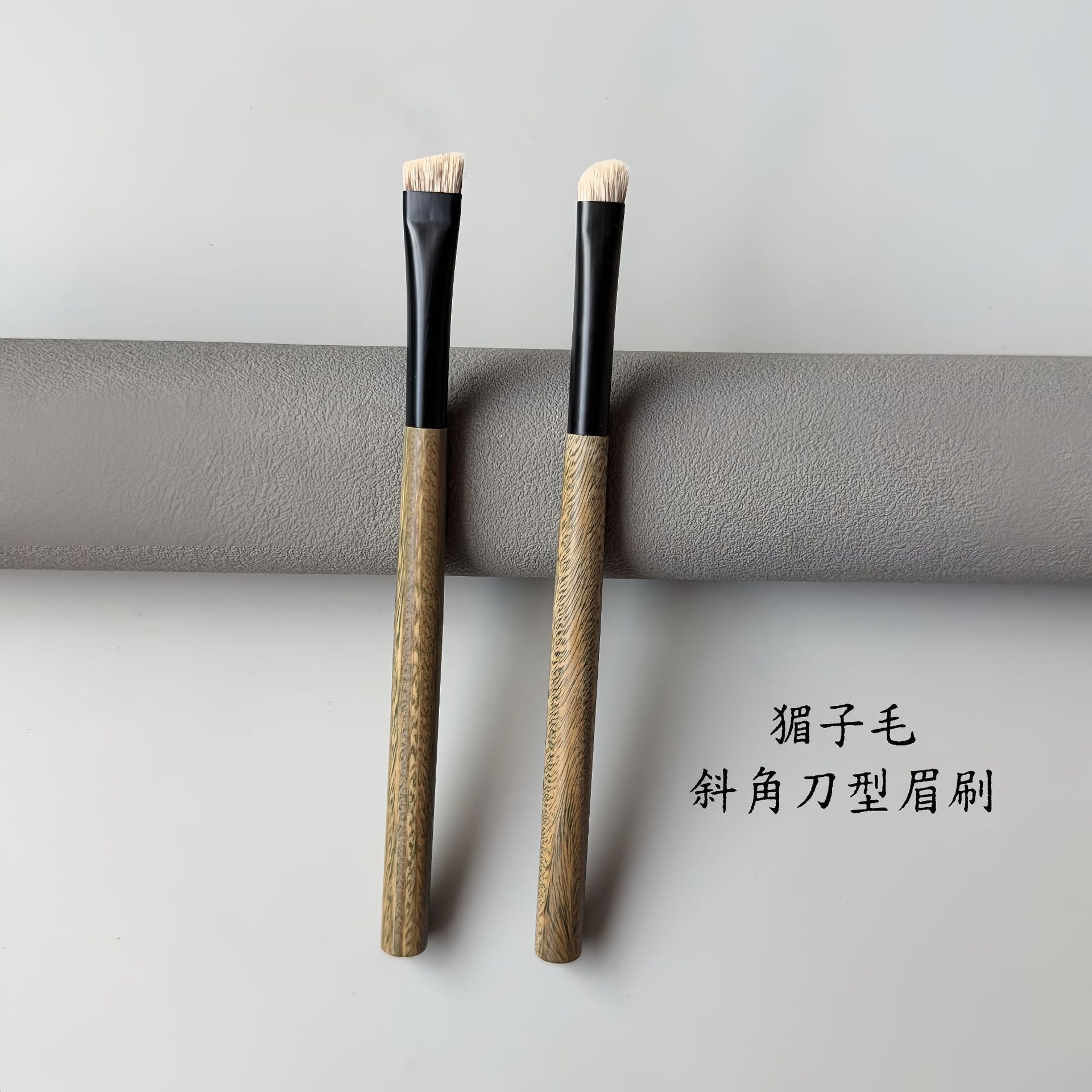 绿檀木纯手工猸子毛大号斜角刀型眉刷偏硬眉粉野生眉毛化妆刷