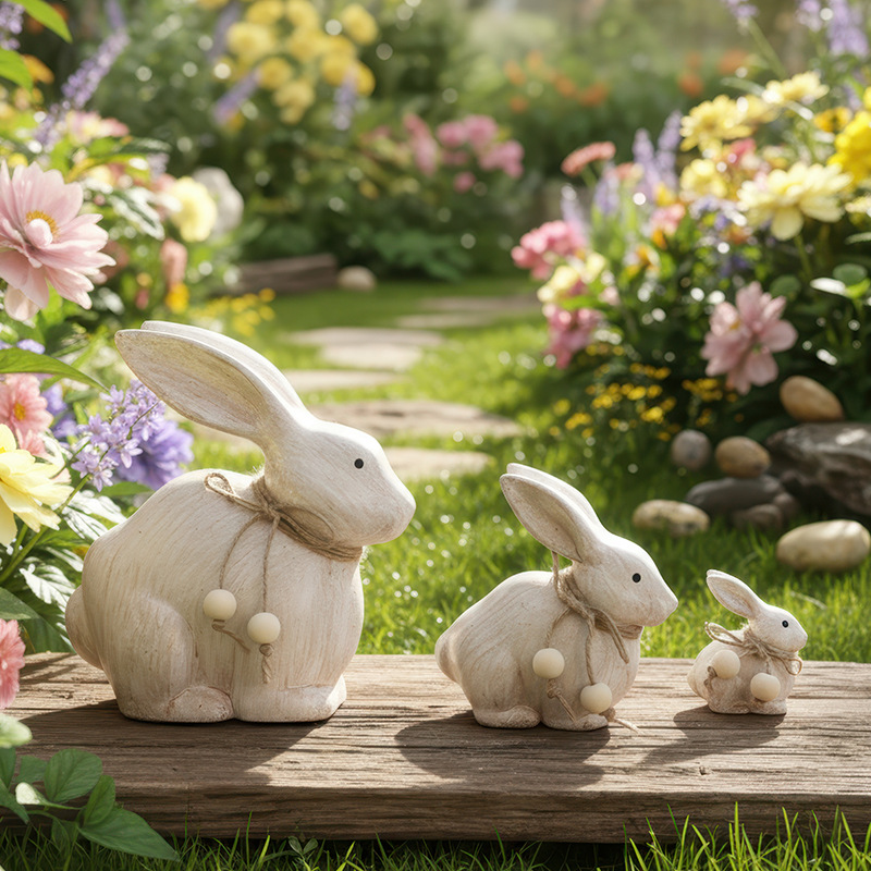 欧式简约木质工艺兔子动物桌面摆件庭院花园阳台造景装饰生日礼品