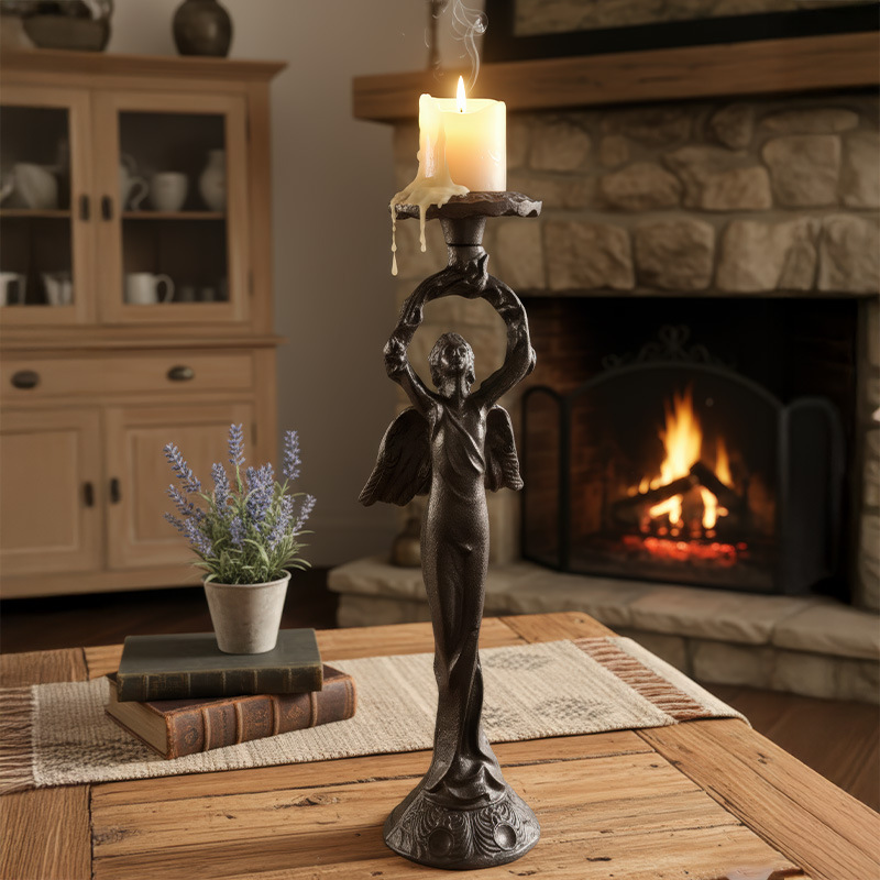 北欧创意复古怀旧铸铁大号翅膀天使烛台摆件聚会餐桌烛光道具装饰