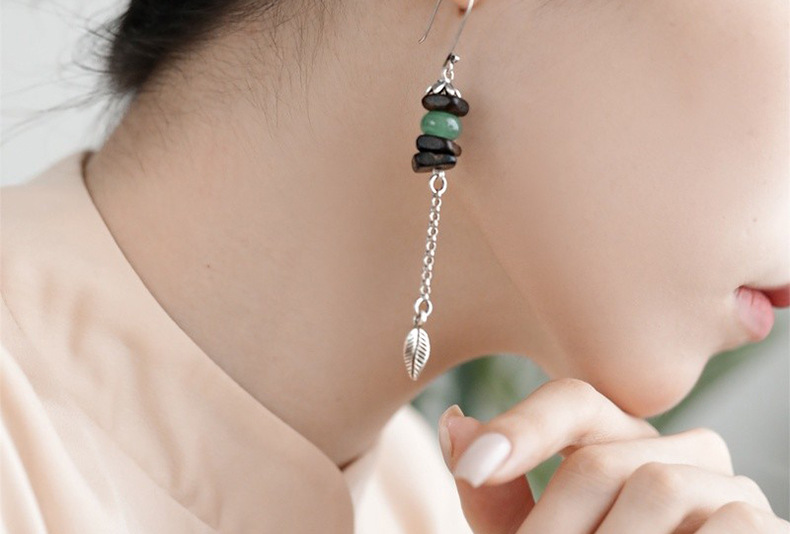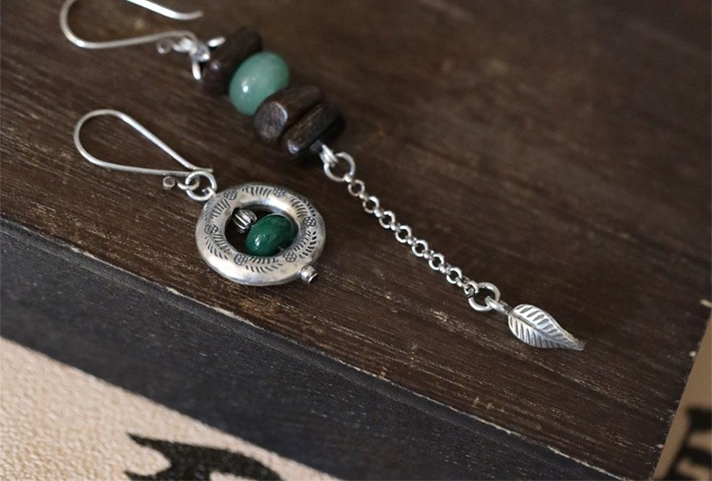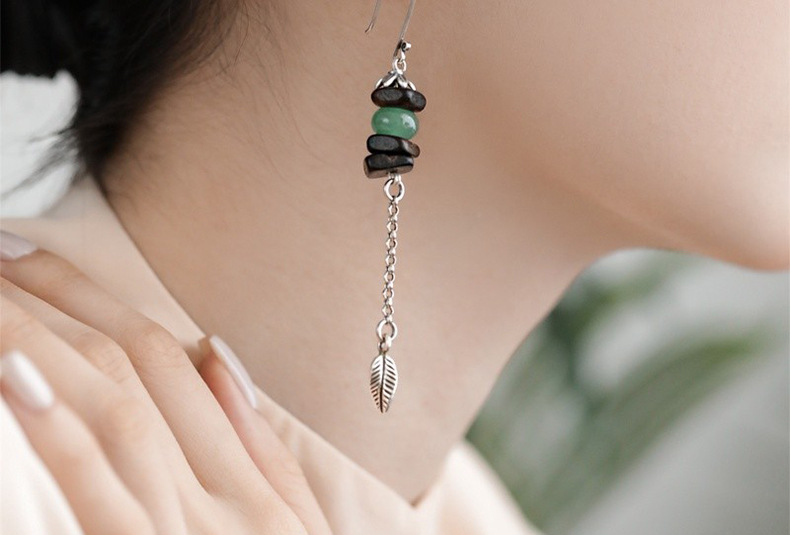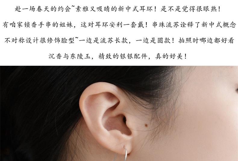 925银复古新中式民族风仿沉香耳环不对称小众设计女感流苏耳坠