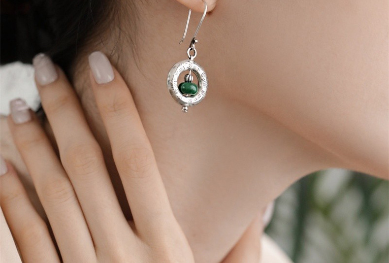 925 スターリングシルバーひょうたん和天翡翠蝉イヤーフックイヤリングライト高級ニッチ絶妙なレトロエスニックスタイルイヤリングで顔をスリムに見せます