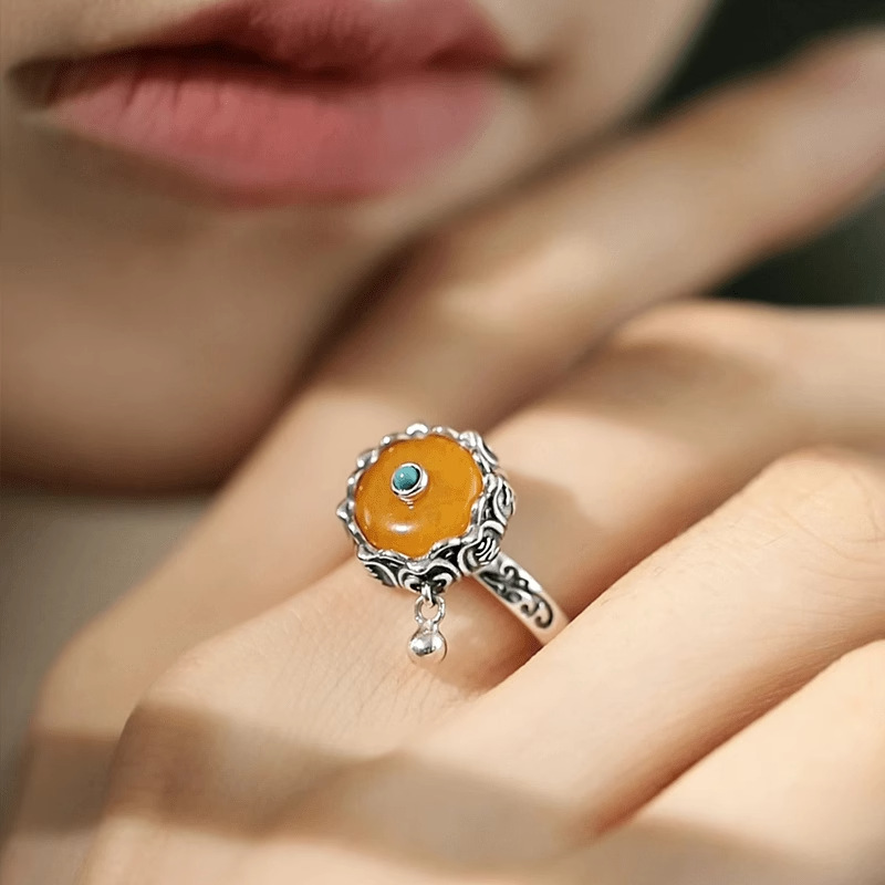 925银复古戒指环开口可调节女蜜蜡小众设计气质可旋转简约感