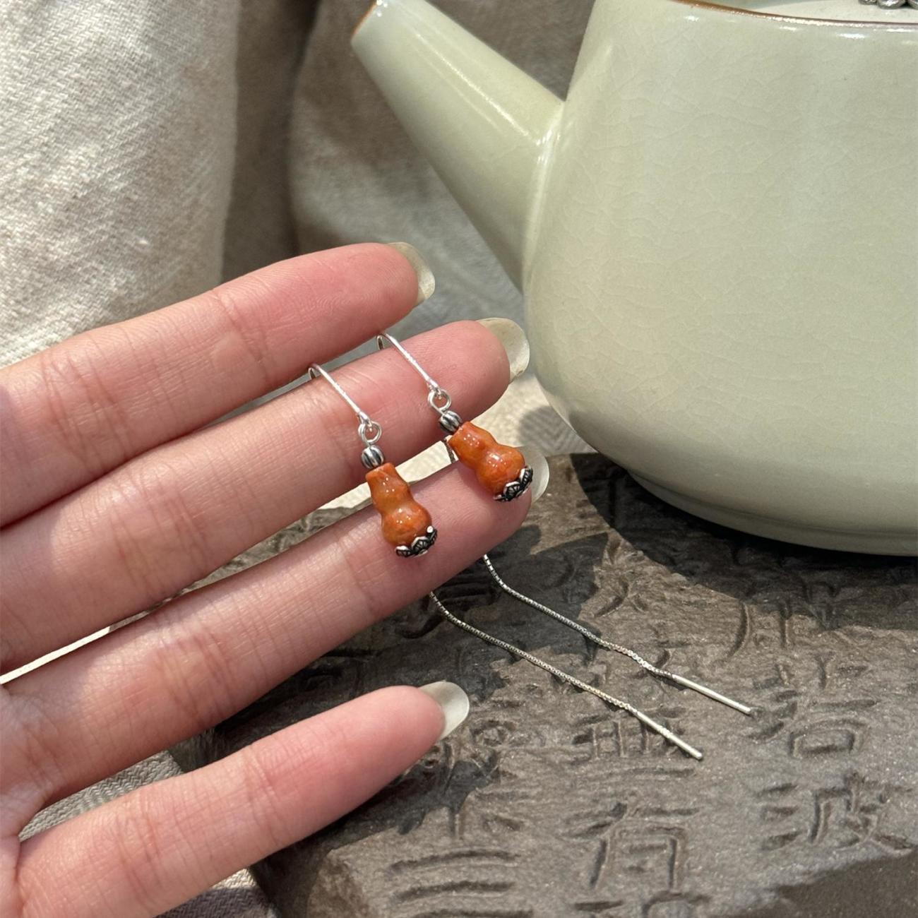 小众轻奢红玉石葫芦耳线新中式新款设计原创国风复古风简约