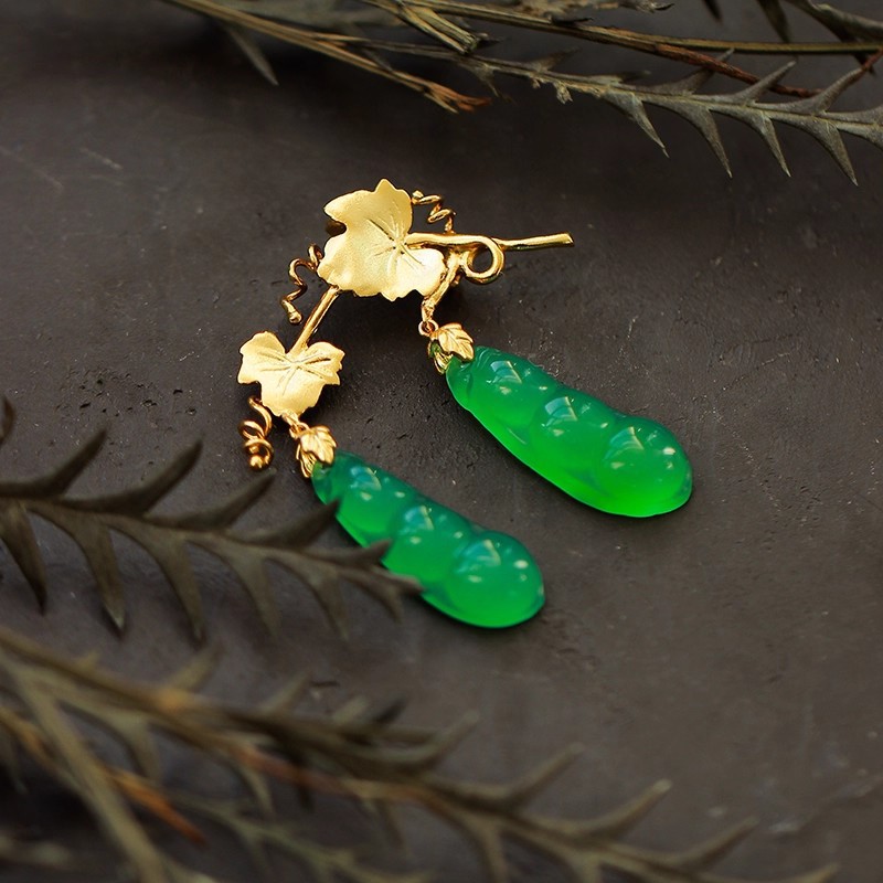 中国风高端系列 豌豆胸针 天然宝石玉髓双福豆灵动高档气质胸花