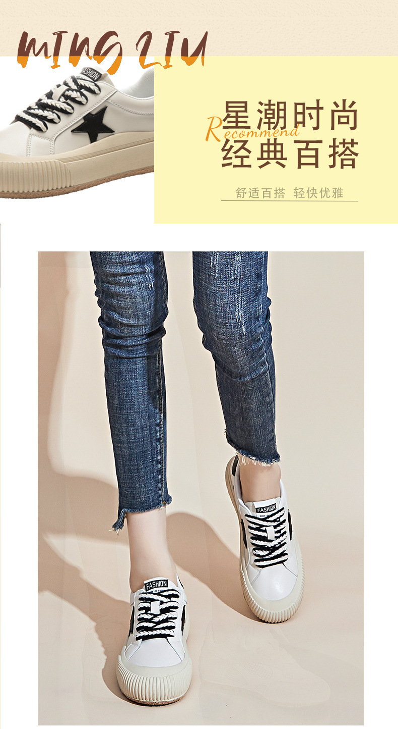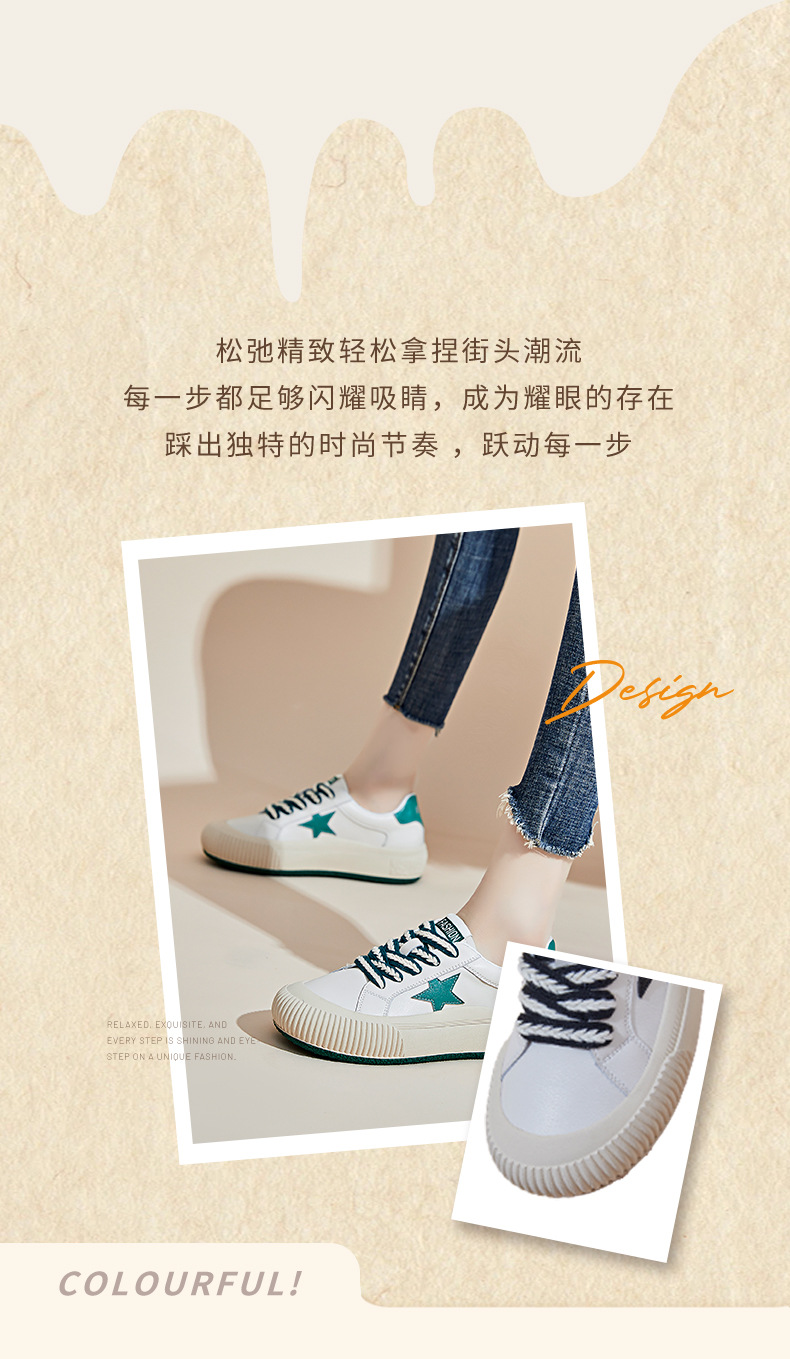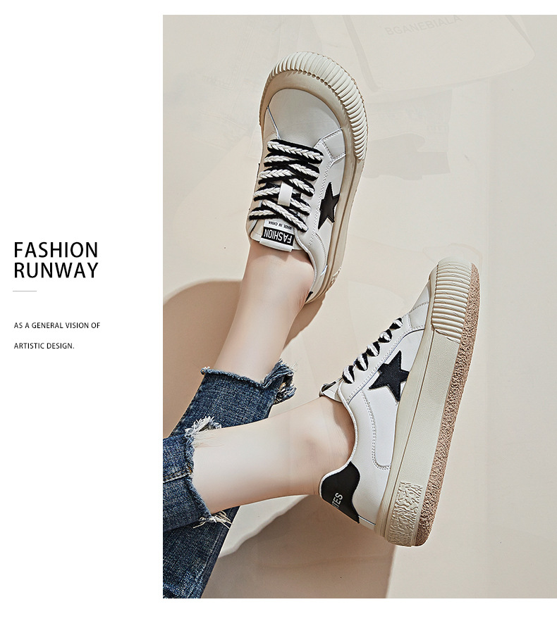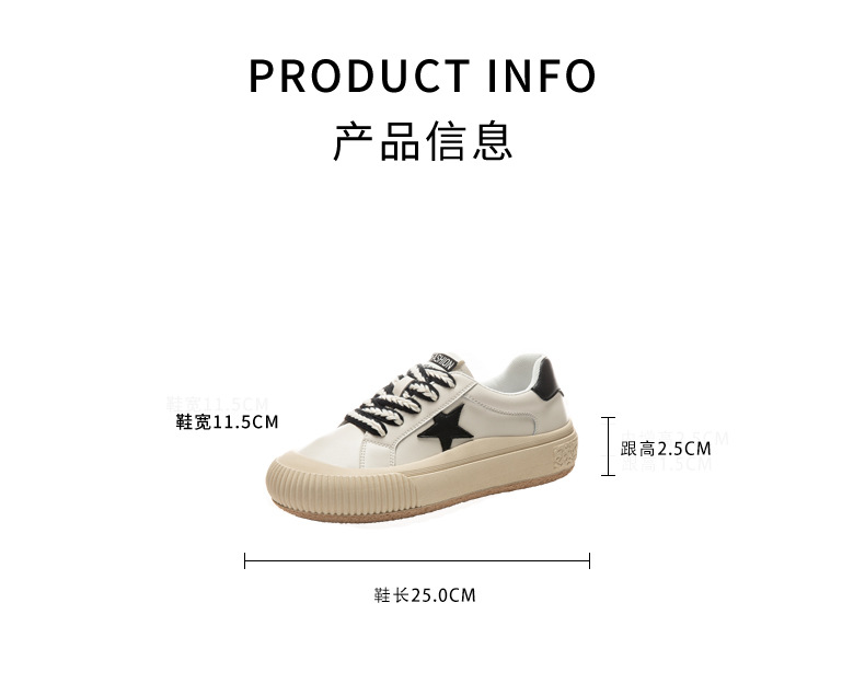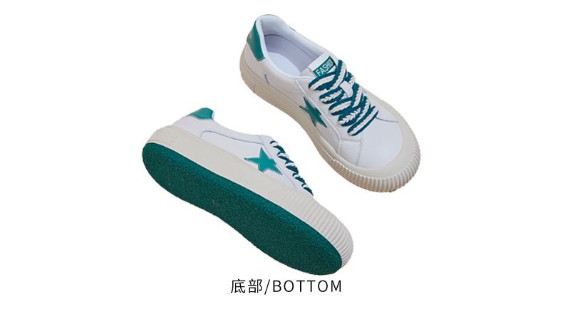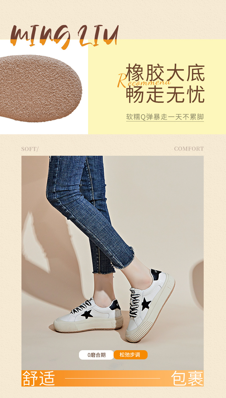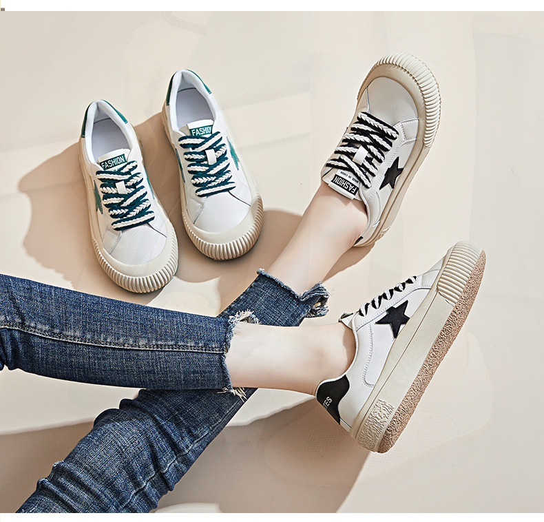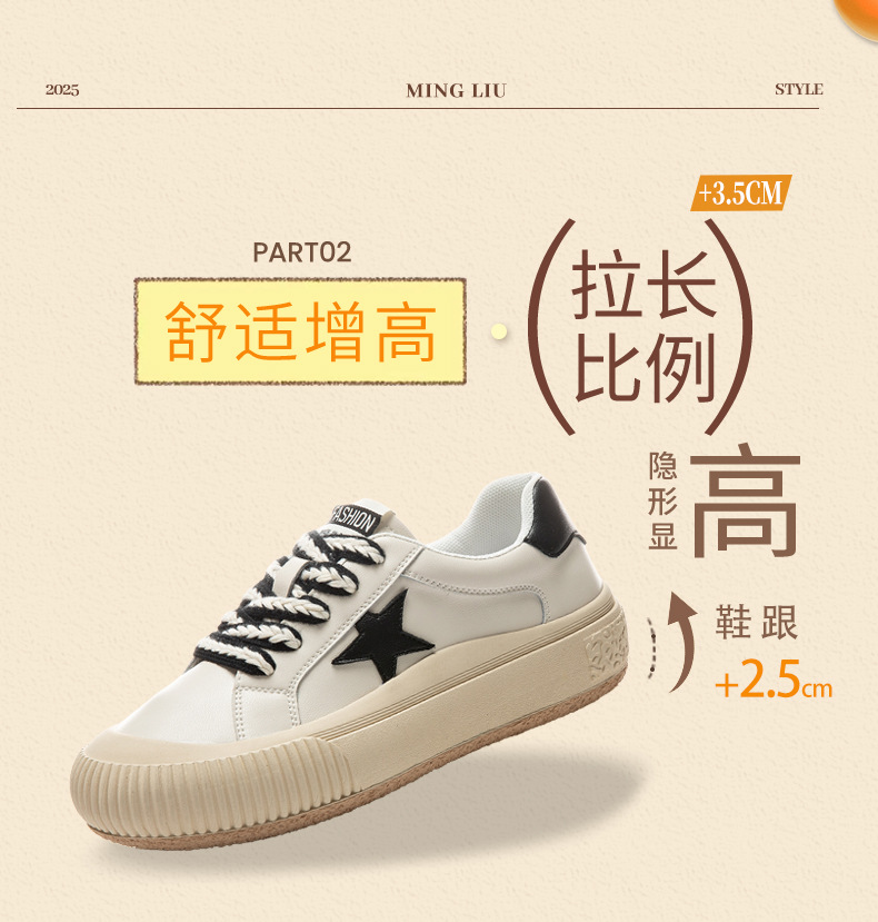 真皮星星小白鞋2026春季新款厚底增高鞋平底复古休闲鞋百搭鞋子女