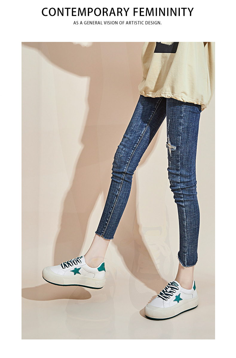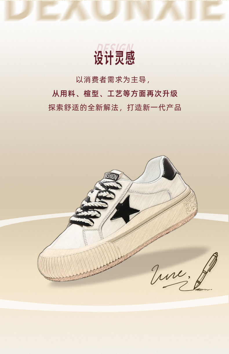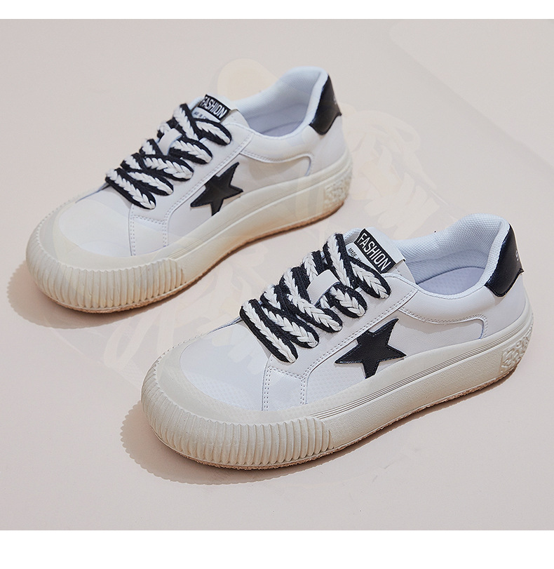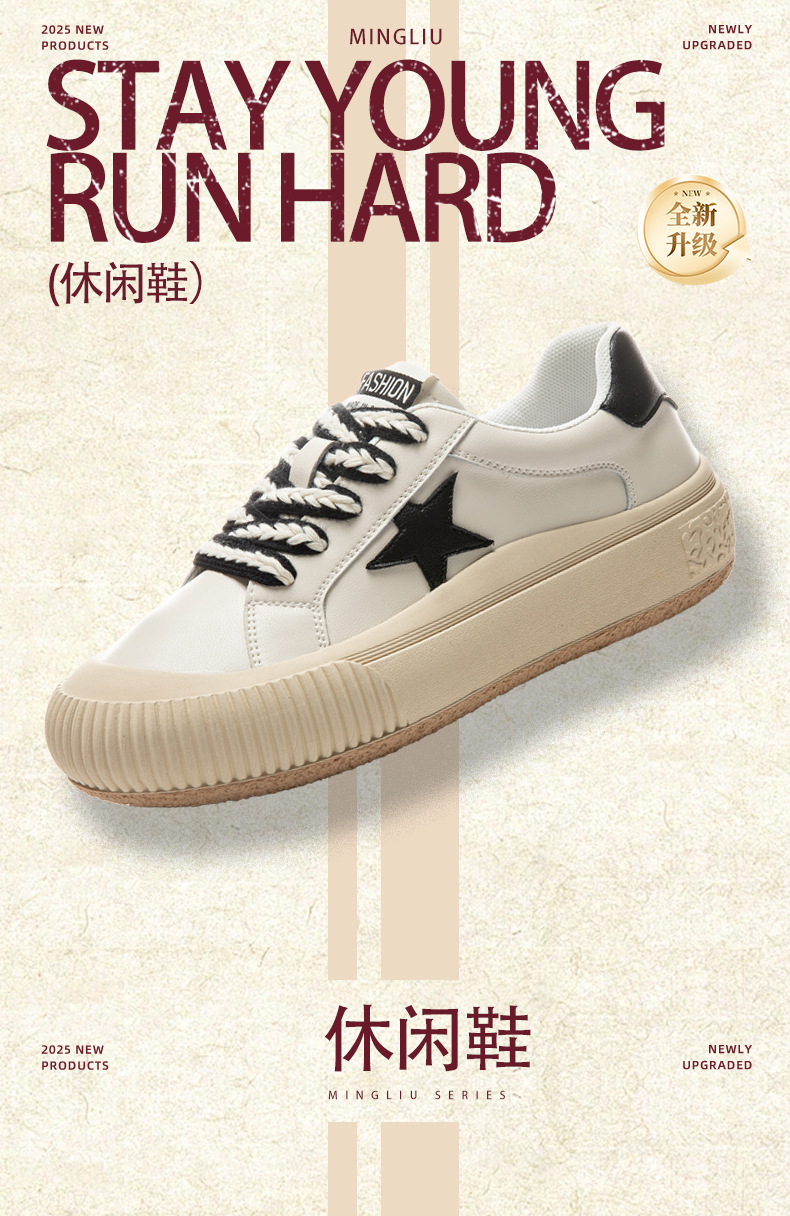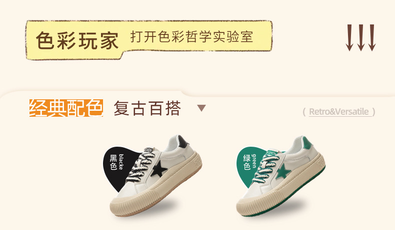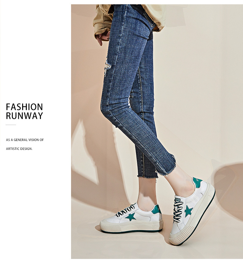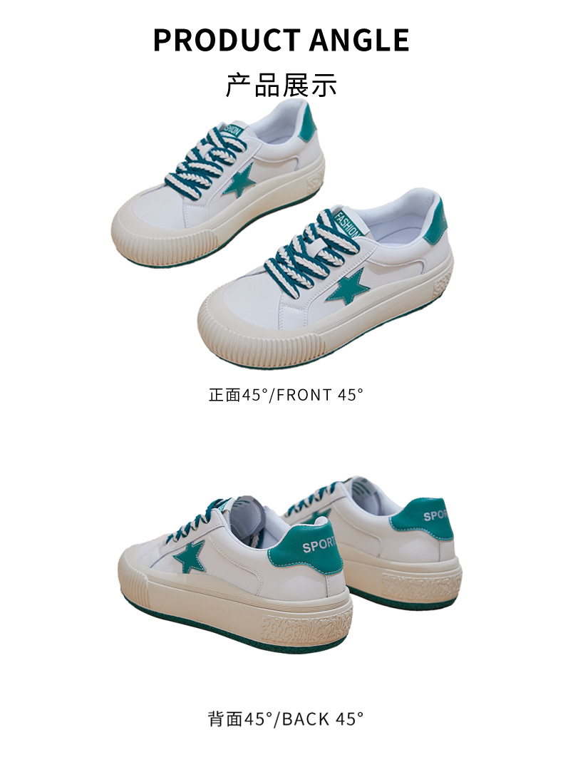 真皮星星小白鞋2026春季新款厚底增高鞋平底复古休闲鞋百搭鞋子女
