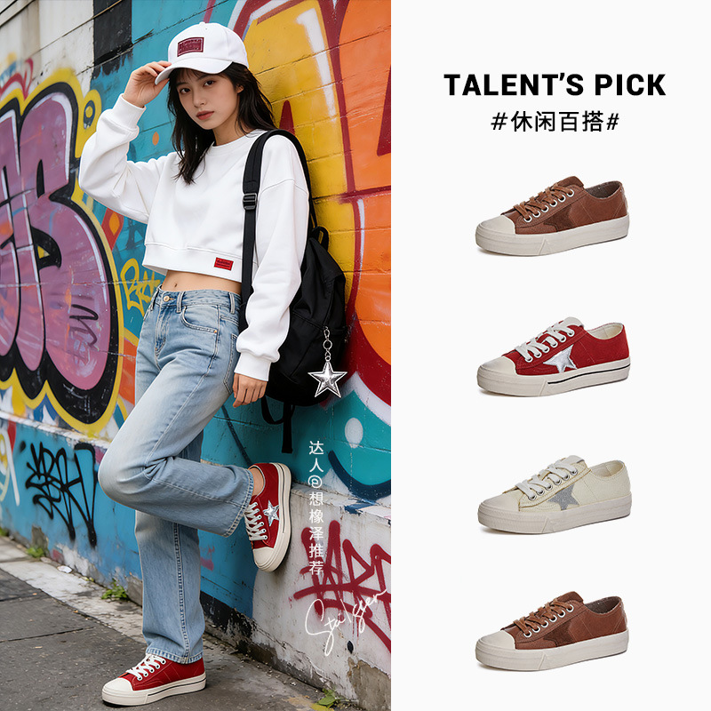 真皮星星女鞋2026春夏新款平底脏脏鞋休闲时尚小白鞋女百搭板鞋女