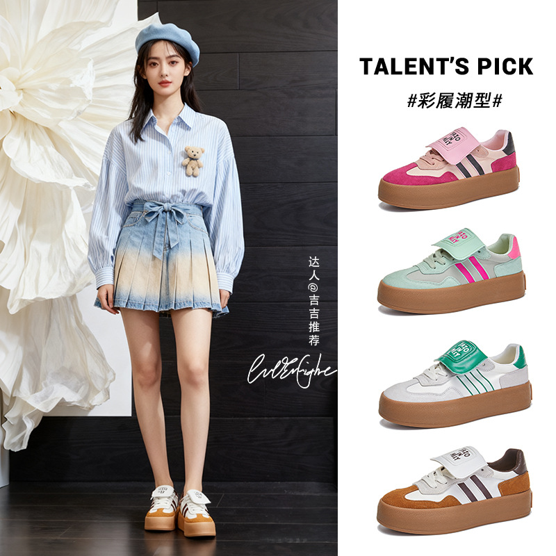 真皮翻盖德训鞋女2026春季新款厚底增高运动鞋休闲百搭拼色阿甘鞋