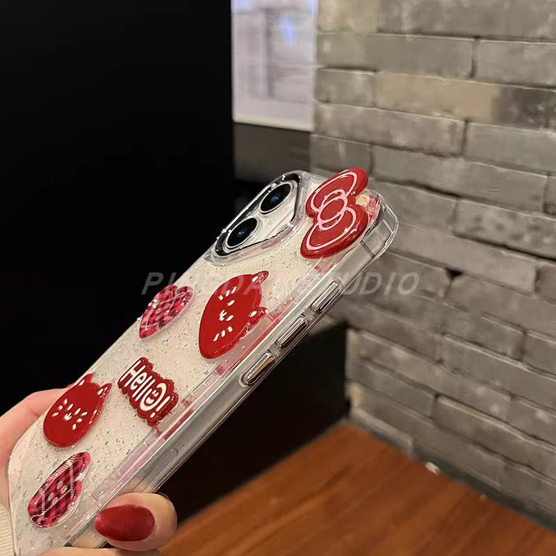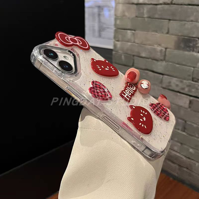 韓風水ドリル真珠愛蝶ネクタイリンゴ16iphone携帯ケース適用15透明14シンプル立体