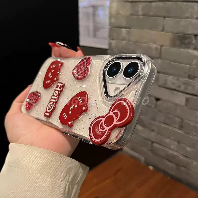 ins风爱心猫咪蝴蝶结闪粉适用Phone16pm/15手机壳14高级13