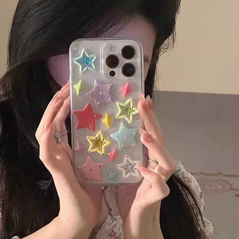 Ins風立体滴彩星はiPhone16promax携帯電話ケースリンゴ14/13ドーパミン星を適用する