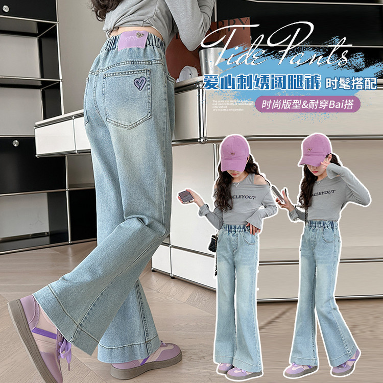 薄款夏季新款2025女童天丝牛仔喇叭裤儿童长裤日韩风中大童牛仔裤