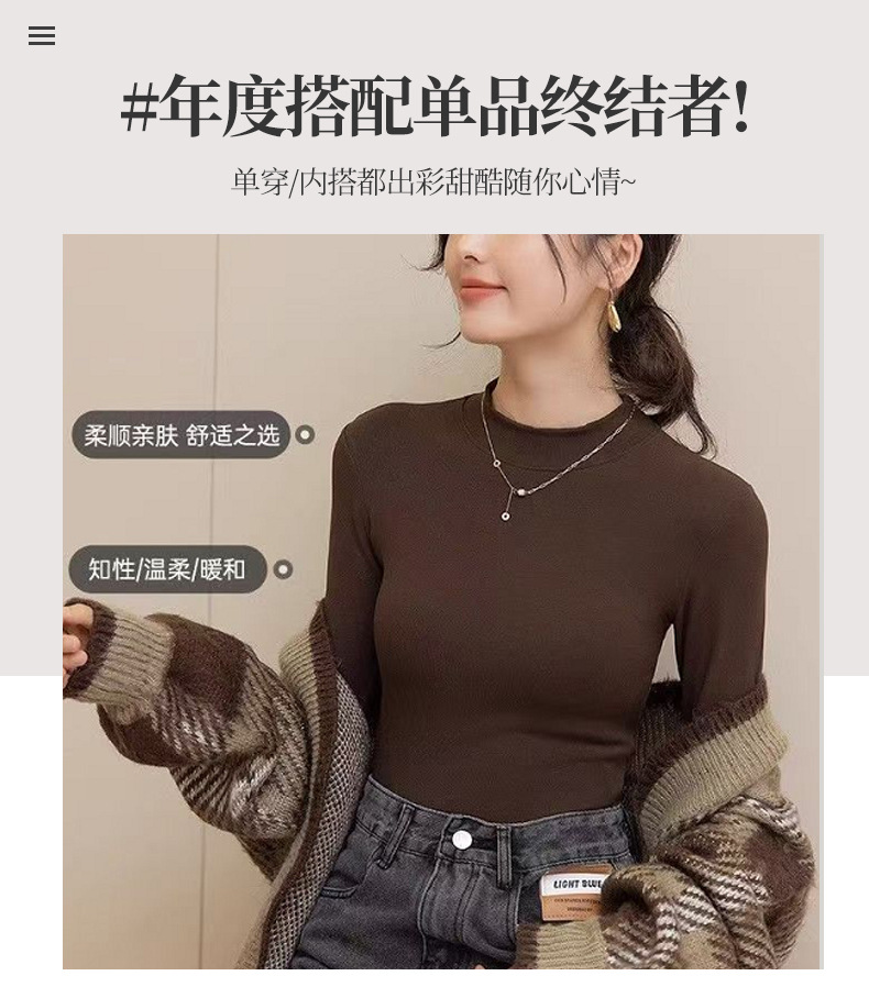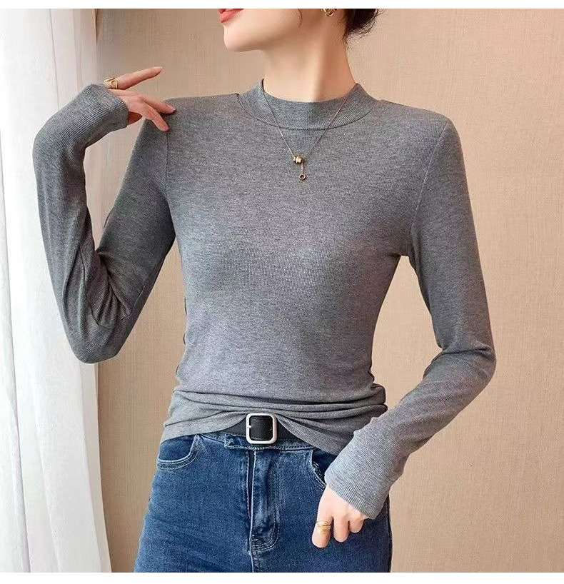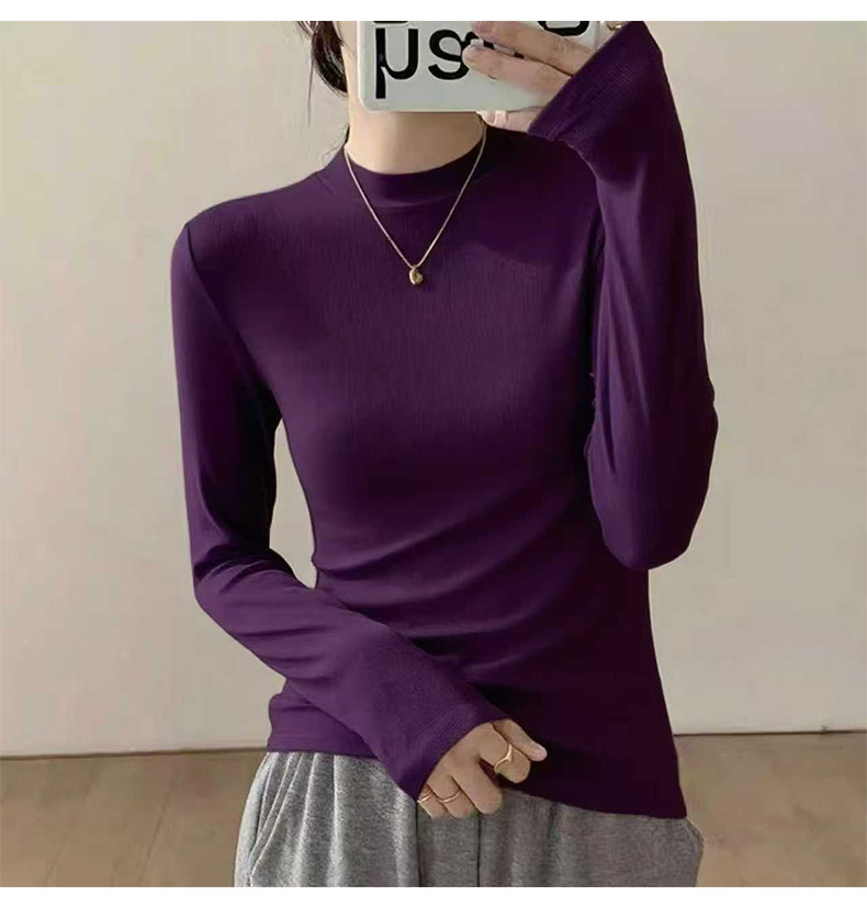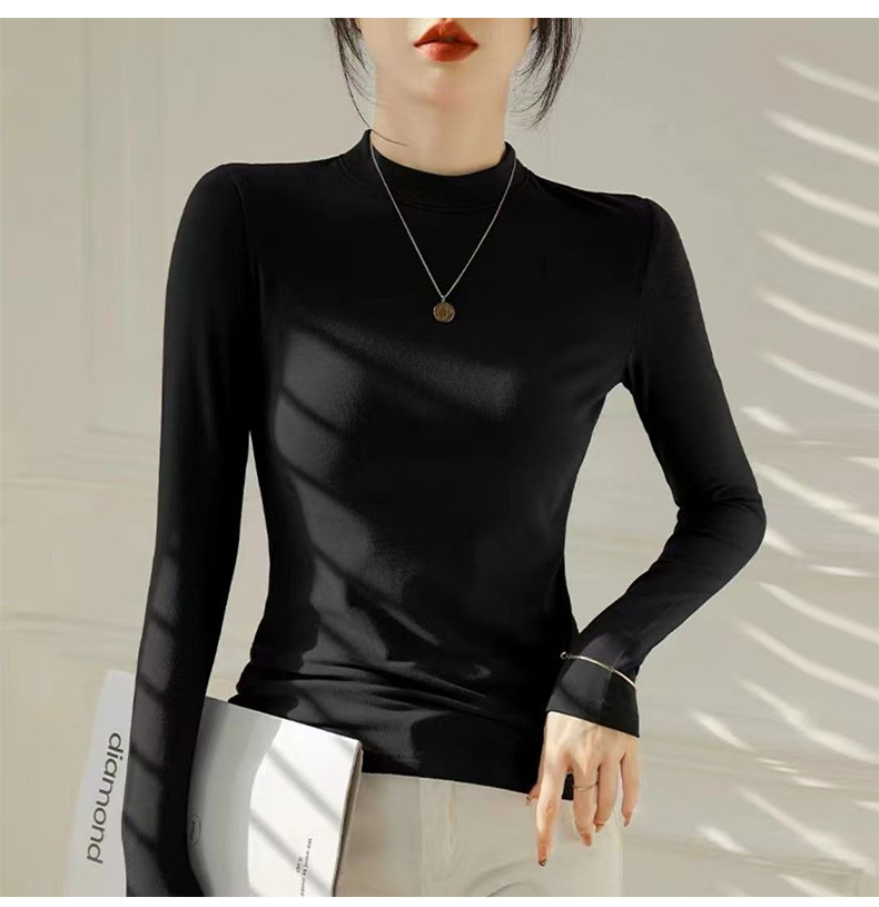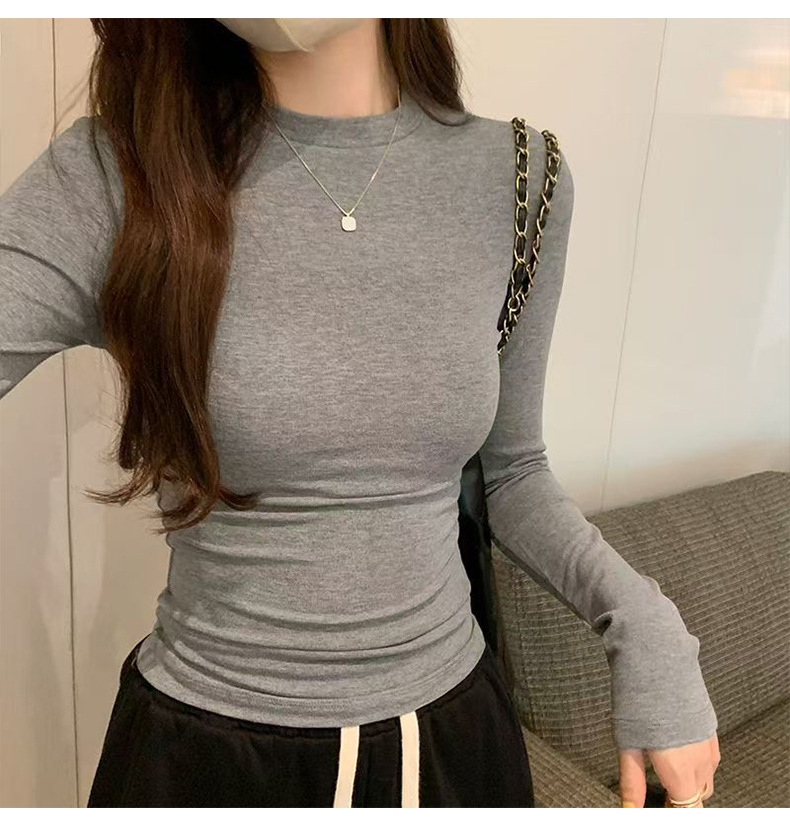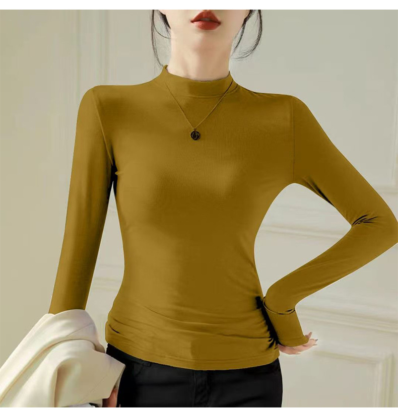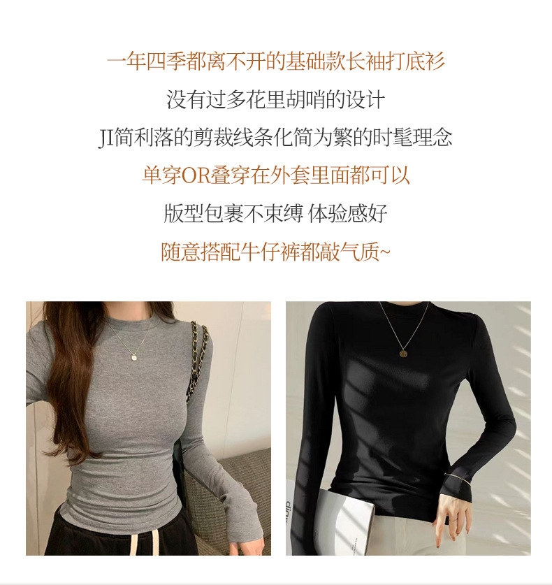 加绒莫代尔秋冬新款长袖t恤女内搭上衣修身白色打底衫小个子