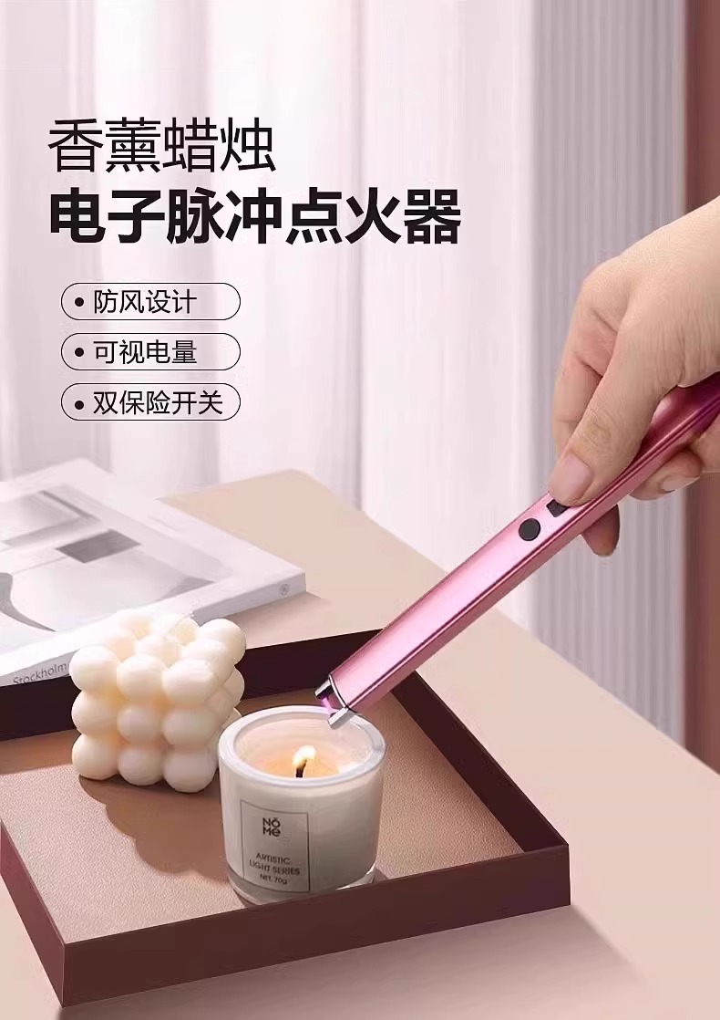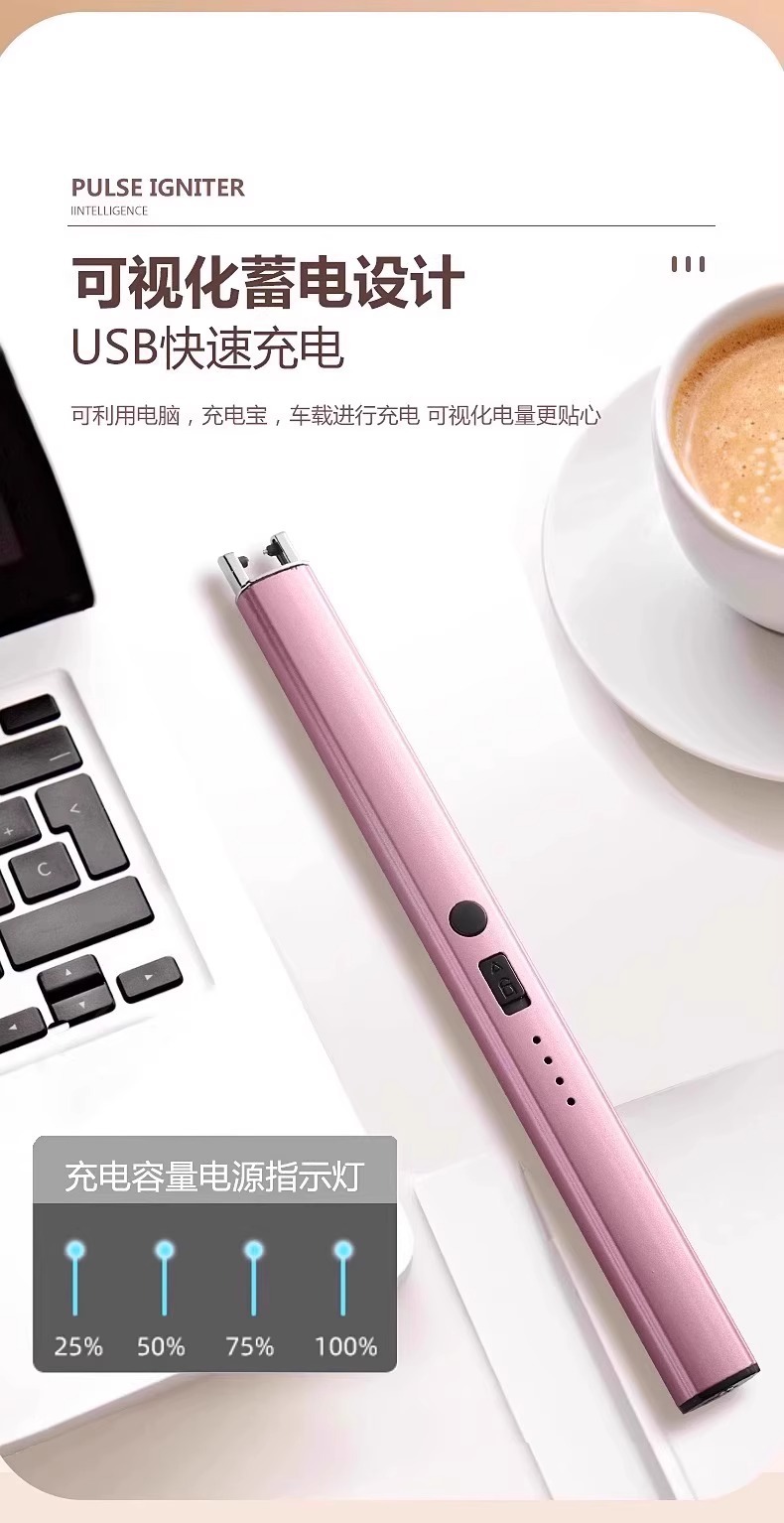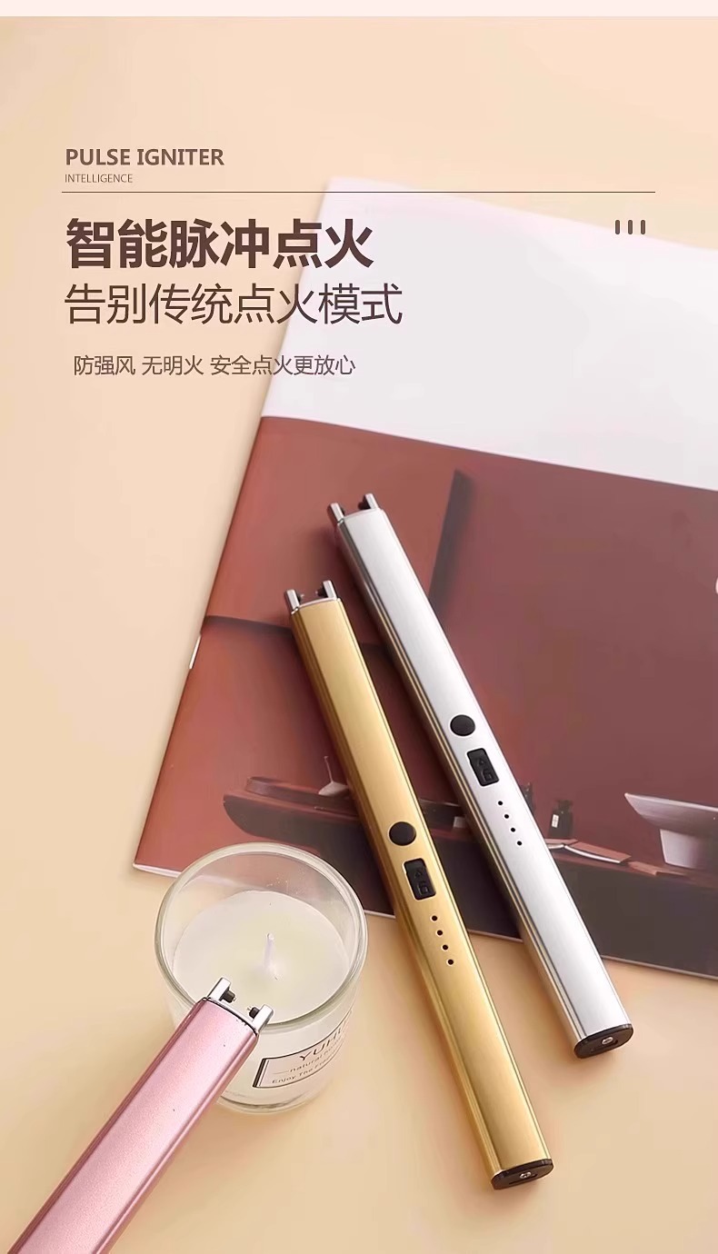 家用充电款香薰蜡烛点火器长手柄电子脉冲加长点火棒煤气灶打火机