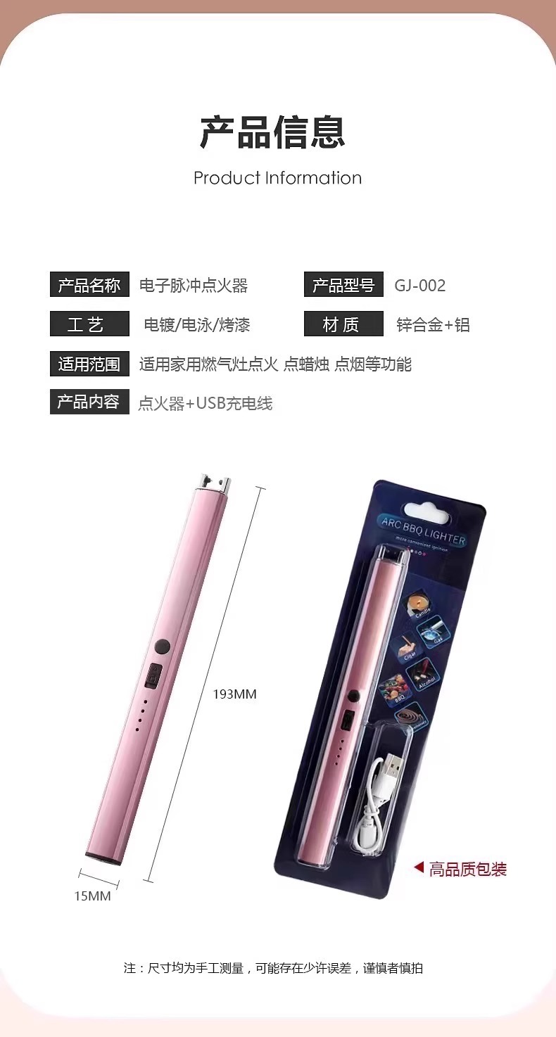 890 ダブルアークイグナイター防風充電式アロマキャンドル点火ガンガス天然ガスパルスライター