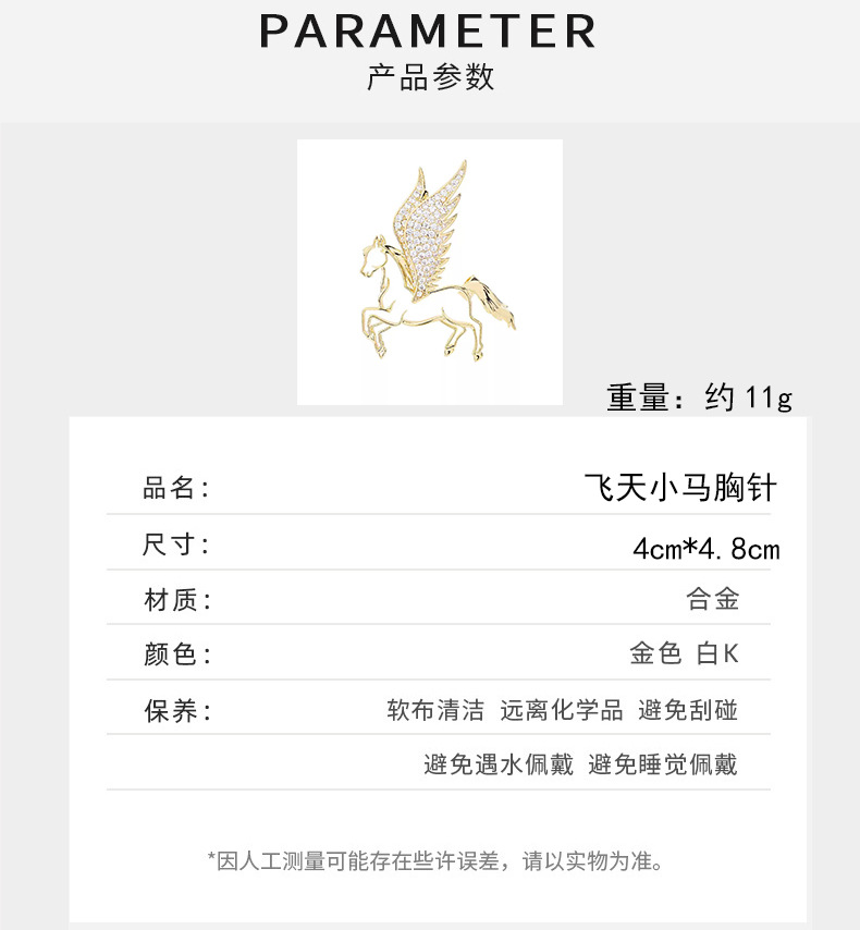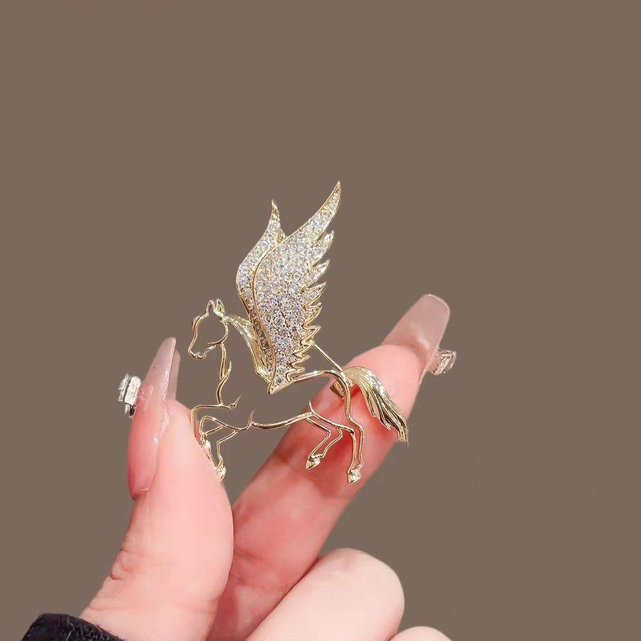 一马当先小马胸针设计感小众女百搭外套镶钻翅膀时尚动物胸花别针