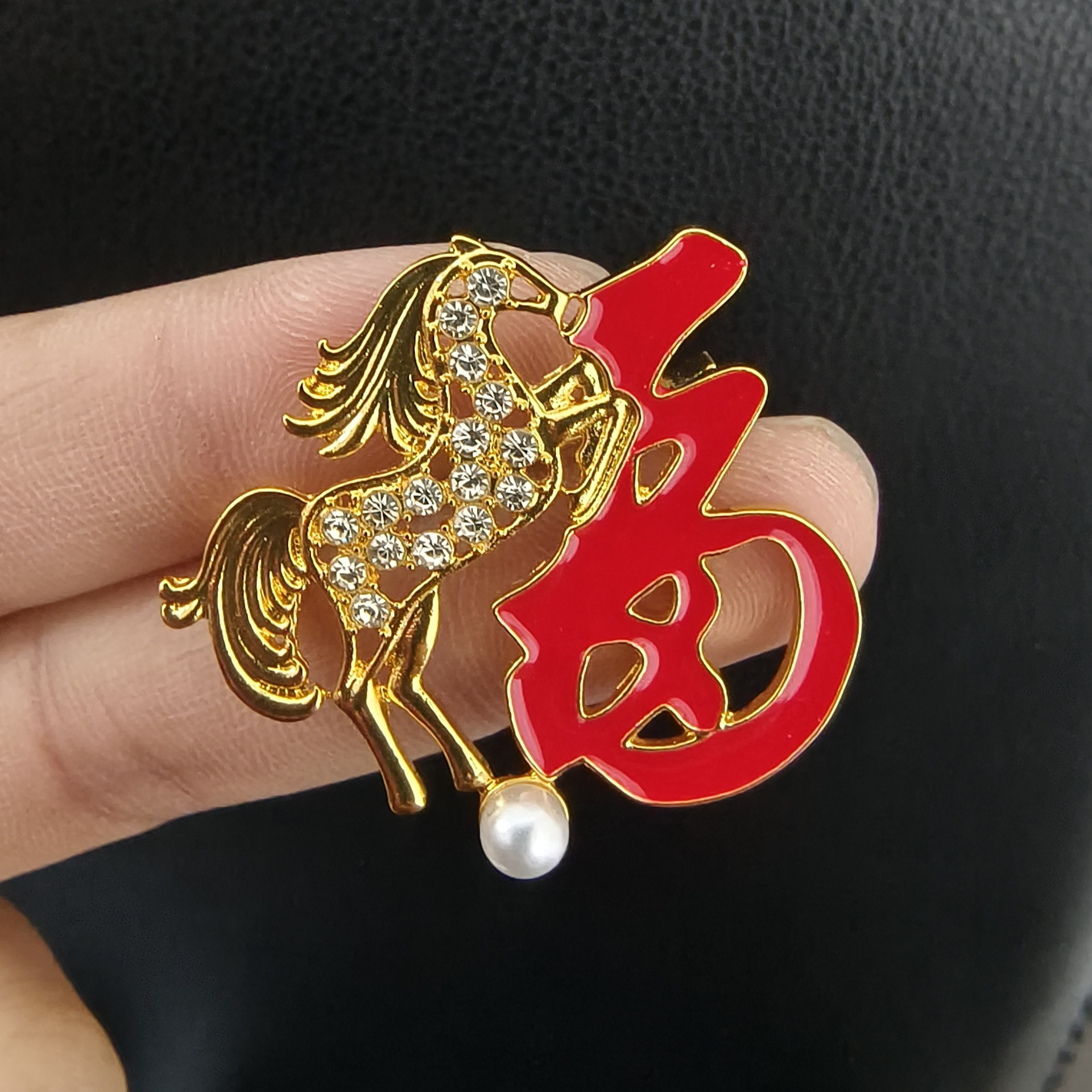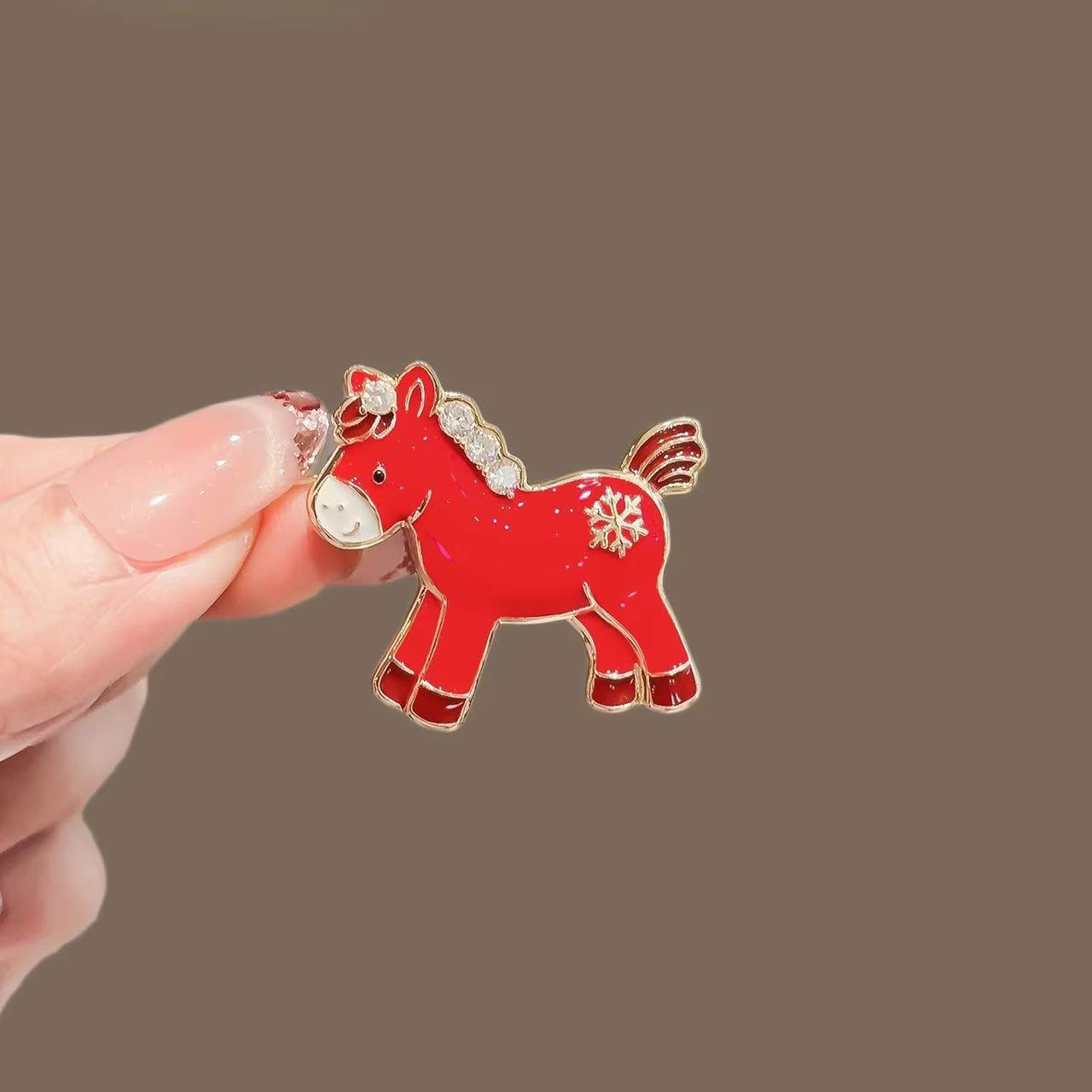 2026本命年生肖红色小马驹胸针马年水钻别针节日创意胸花配饰批发