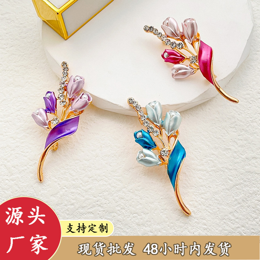 韓国版の新しいダイヤモンドがちりばめられた高級ブローチ、女性用シルクスカーフバックル、合金ブローチ、コサージュ、多用途のパールピンジュエリー卸売