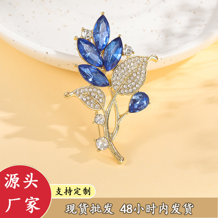 エレガントな蘭ブローチ、軽くて豪華なニッチデザイン、ブルークリスタルコサージュ、絶妙でエレガントなスーツアクセサリー卸売