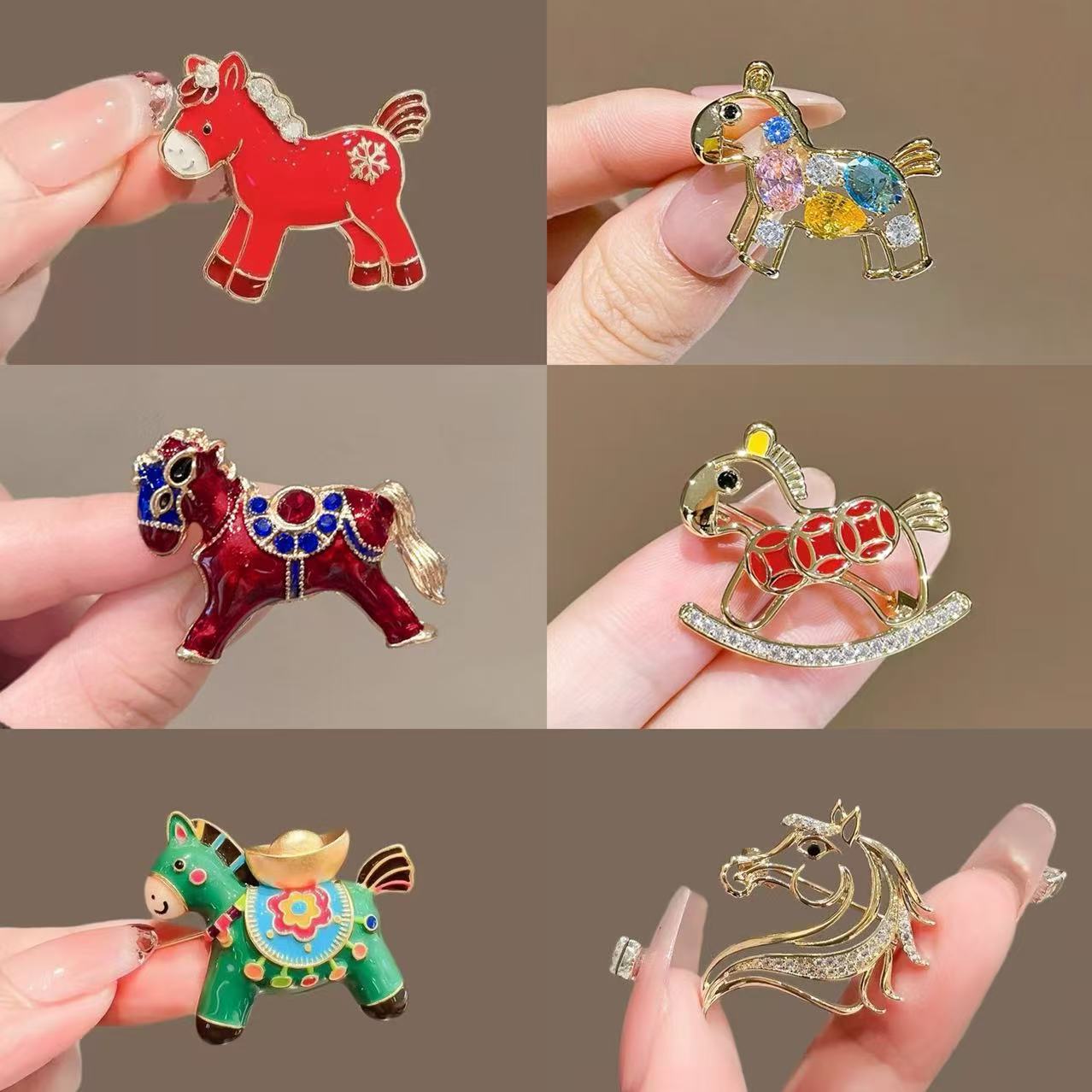 新款马上有福胸针设计感珐琅时尚个性小马胸花生肖马别针新年礼物