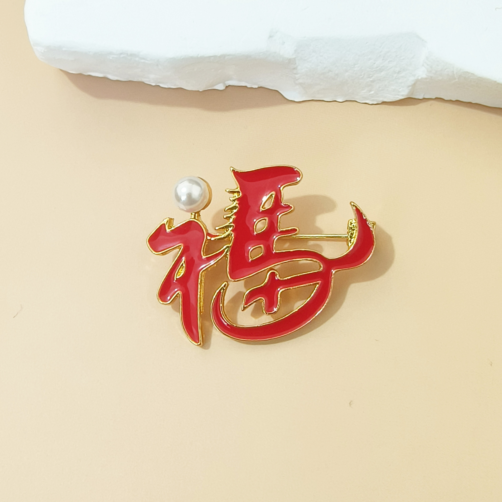 马年福字胸针马上有福汉字创意胸针高档镶钻红色滴油天然珍珠别针