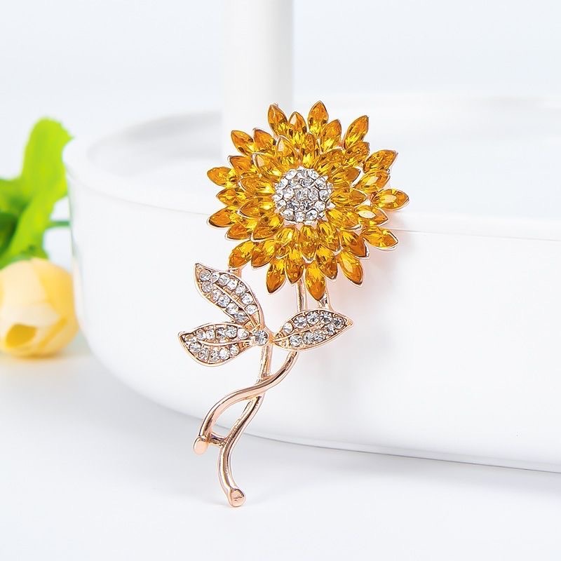 新しいファッションライト高級ラインストーンひまわりブローチ、エレガントでハイエンドのスーツコサージュブローチアクセサリー卸売