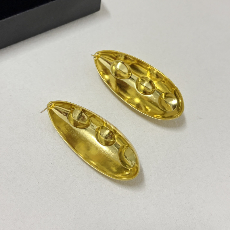 欧米のシンプルな大衆デザインの光沢面楕円立体フォアグラ形のイヤリングの高級感があります。