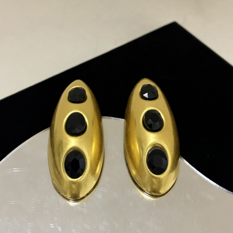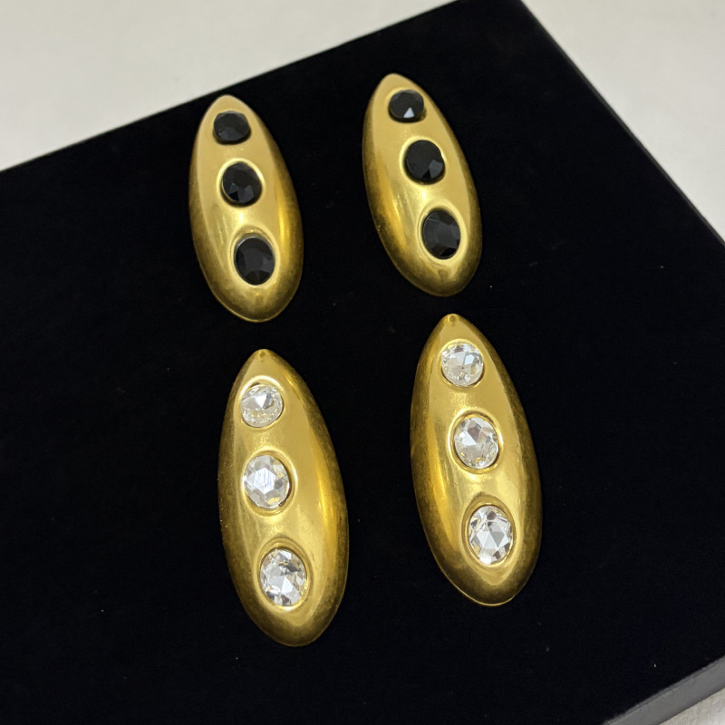 法式复古简约轻奢尖头椭圆水滴闪钻耳环百搭时尚气质高级感耳饰