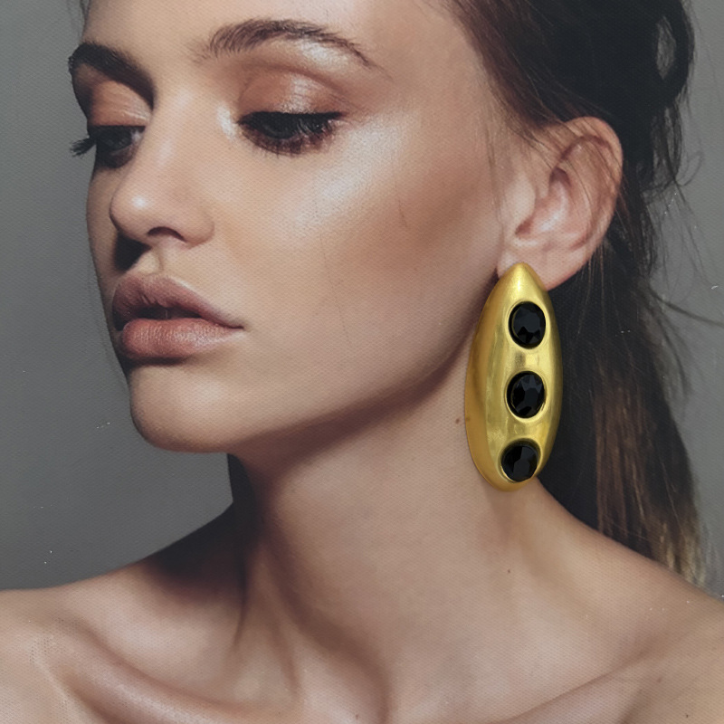 欧美小众设计复古亮面金属几何方形水滴耳环轻奢个性时尚精致耳饰