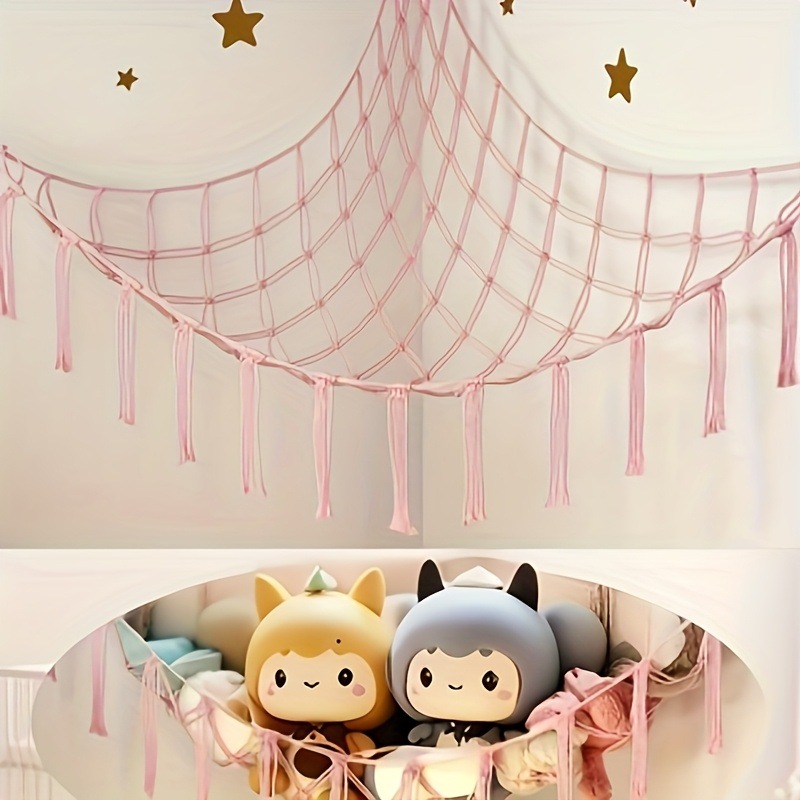 三角玩具吊床 跨境手工编织棉绳毛绒玩具墙兜装饰流苏玩具网兜床