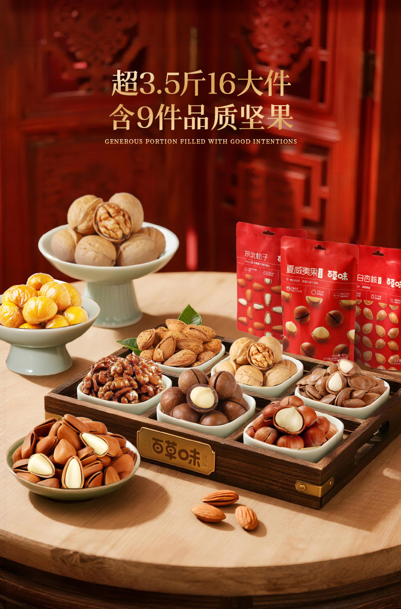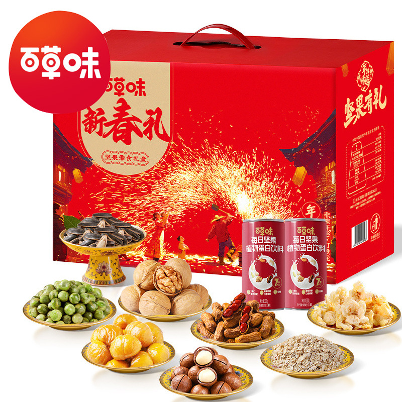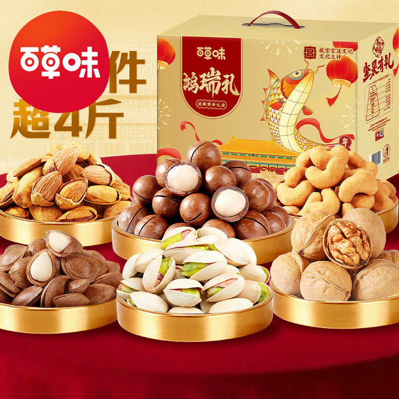 百草味春节新年团购批发混合坚果零食礼盒送领导长辈正品员工福利