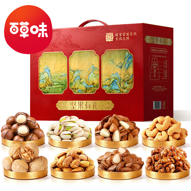 百草味 坚果零食礼盒2018g(坚果有礼-千里江山)箱规5盒团购批发