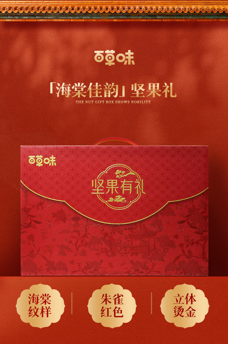 百草味 坚果零食礼盒1788g(坚果有礼-海棠佳韵)箱规5盒批发团购