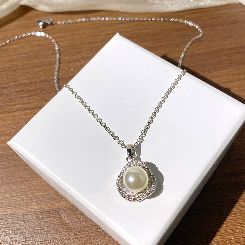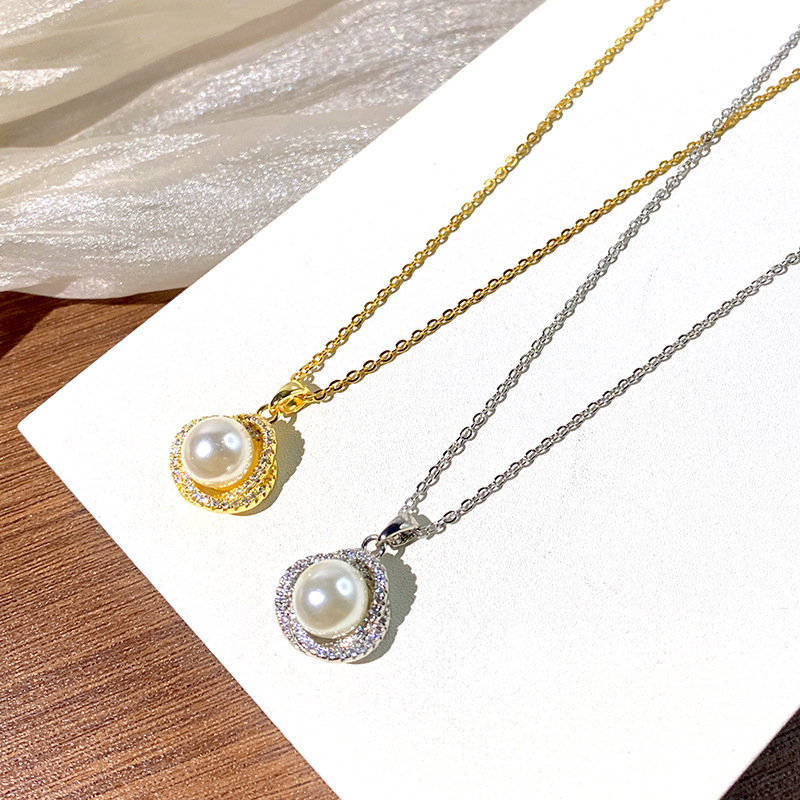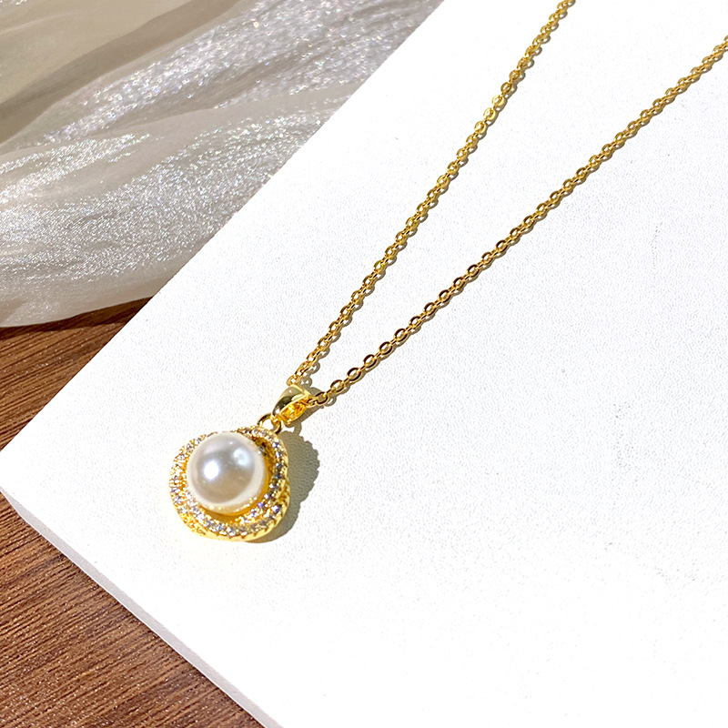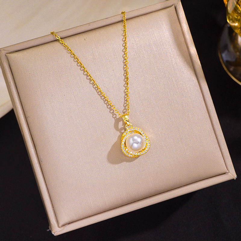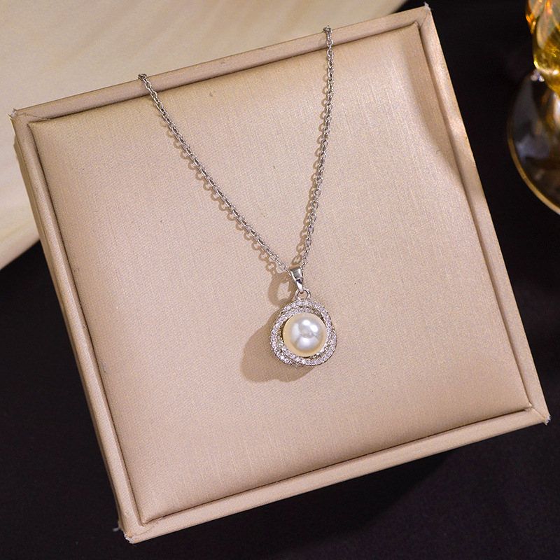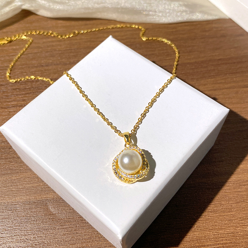 下游热销爆款珍珠山茶花钛钢项链女镶嵌锆石满钻锁骨链小众感饰品
