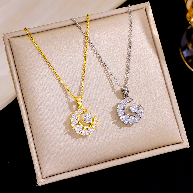 闪亮满钻设计感爱心锆石组成月亮钛钢项链女小众轻奢风锁骨链饰品