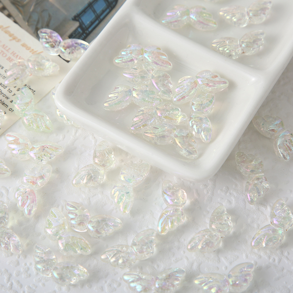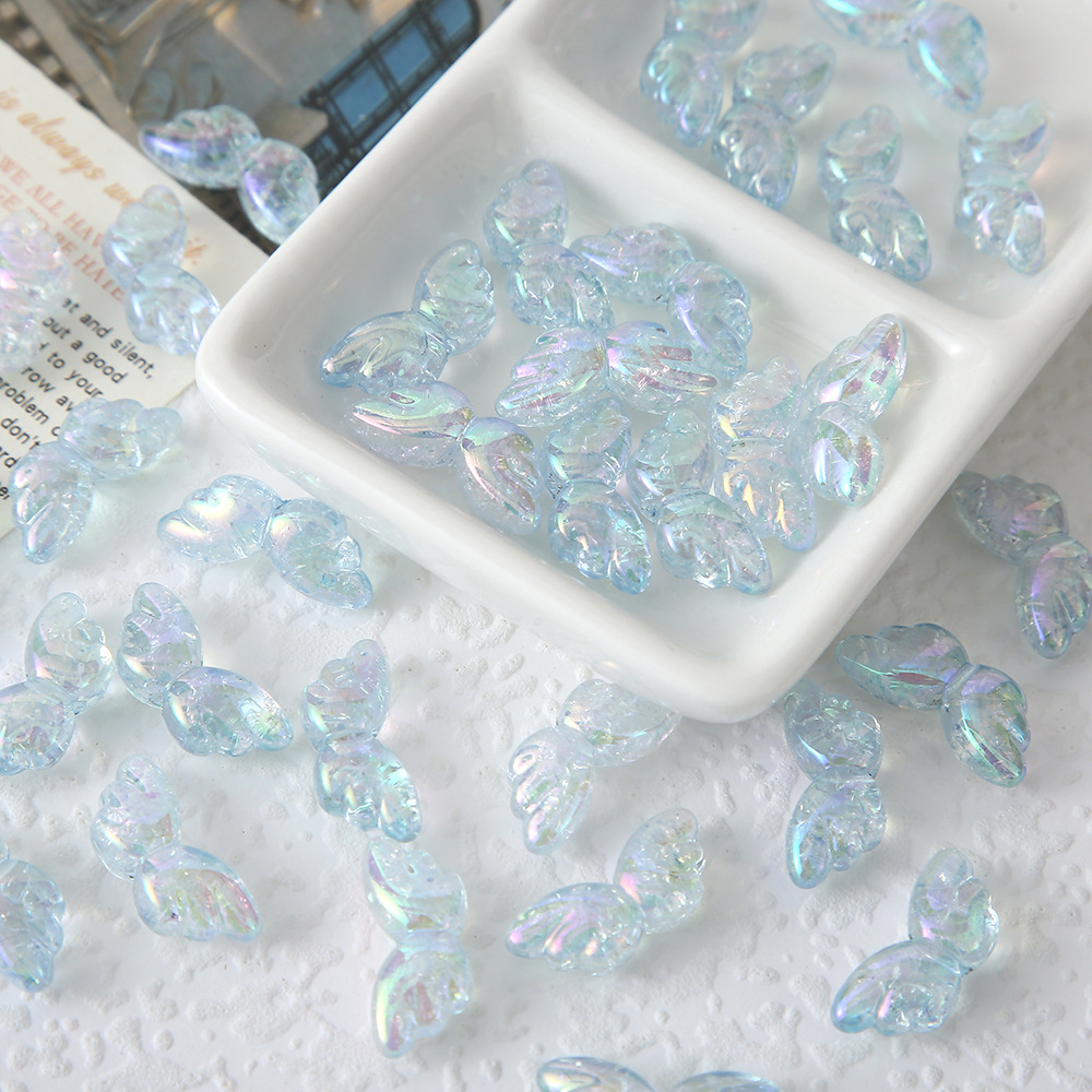 人鱼姬炫彩蝴蝶小翅膀直孔串珠子 手工diy材料手链手机链散珠配件