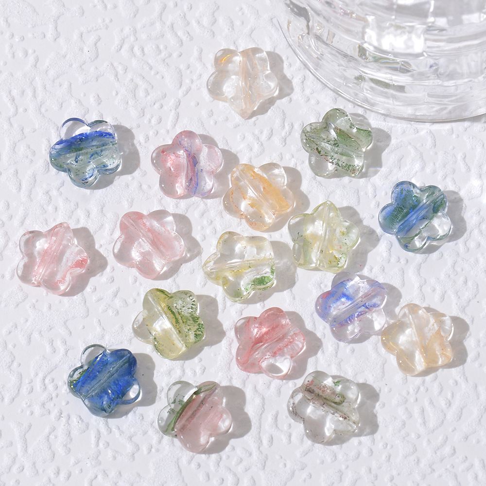 清新琉璃小花拉丝晕染花朵串珠 手工diy手链项链饰品配件古风散珠