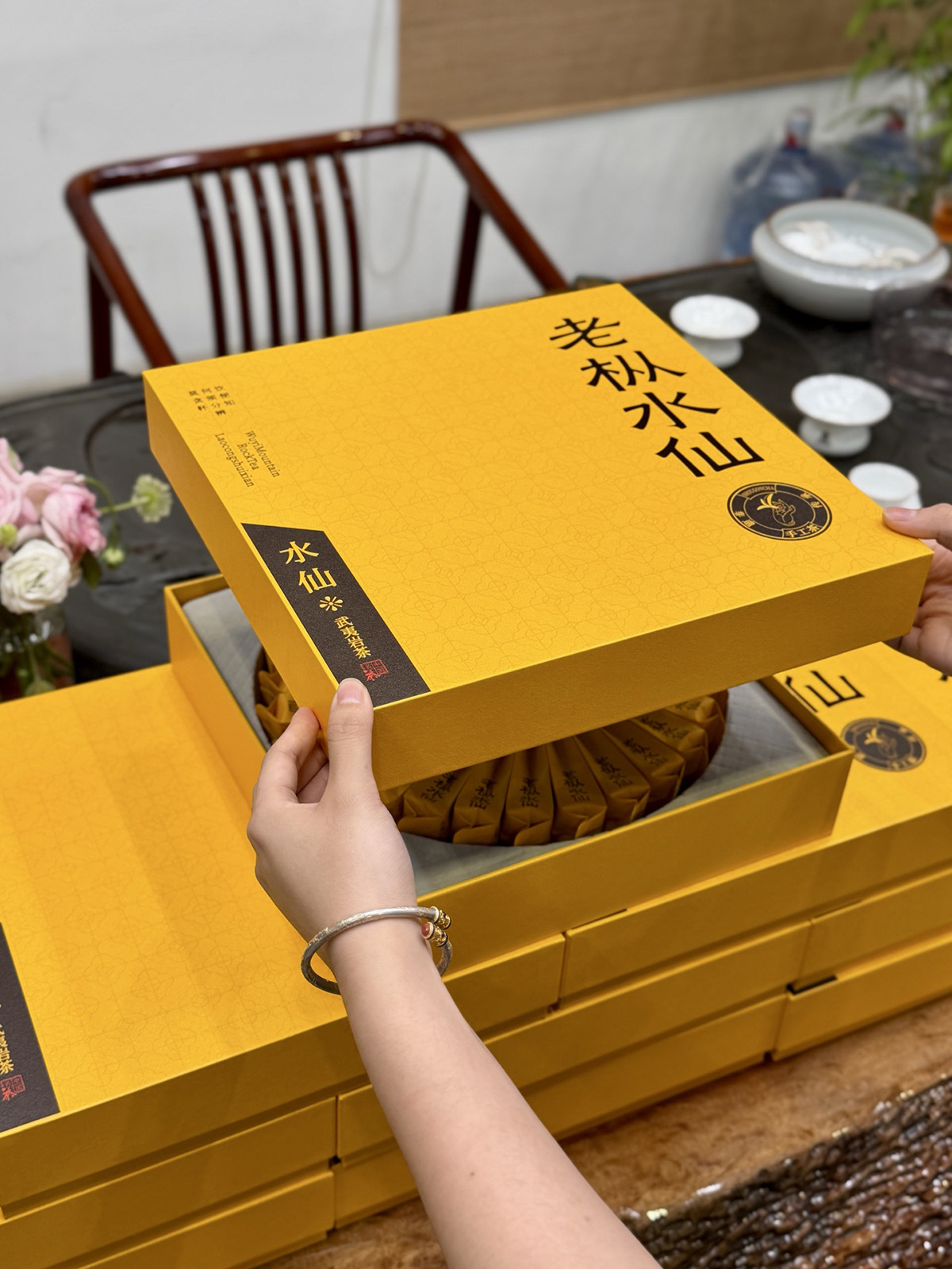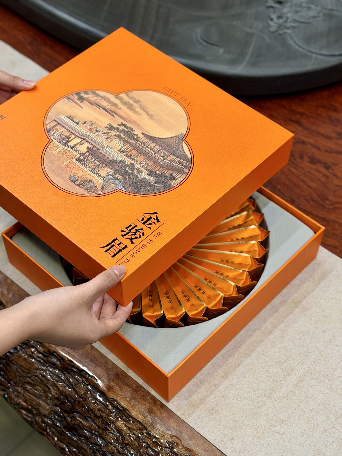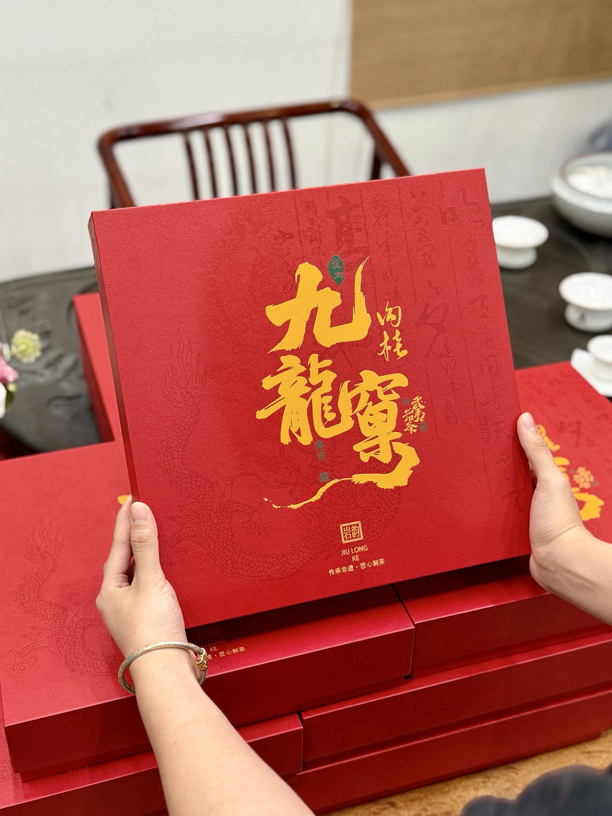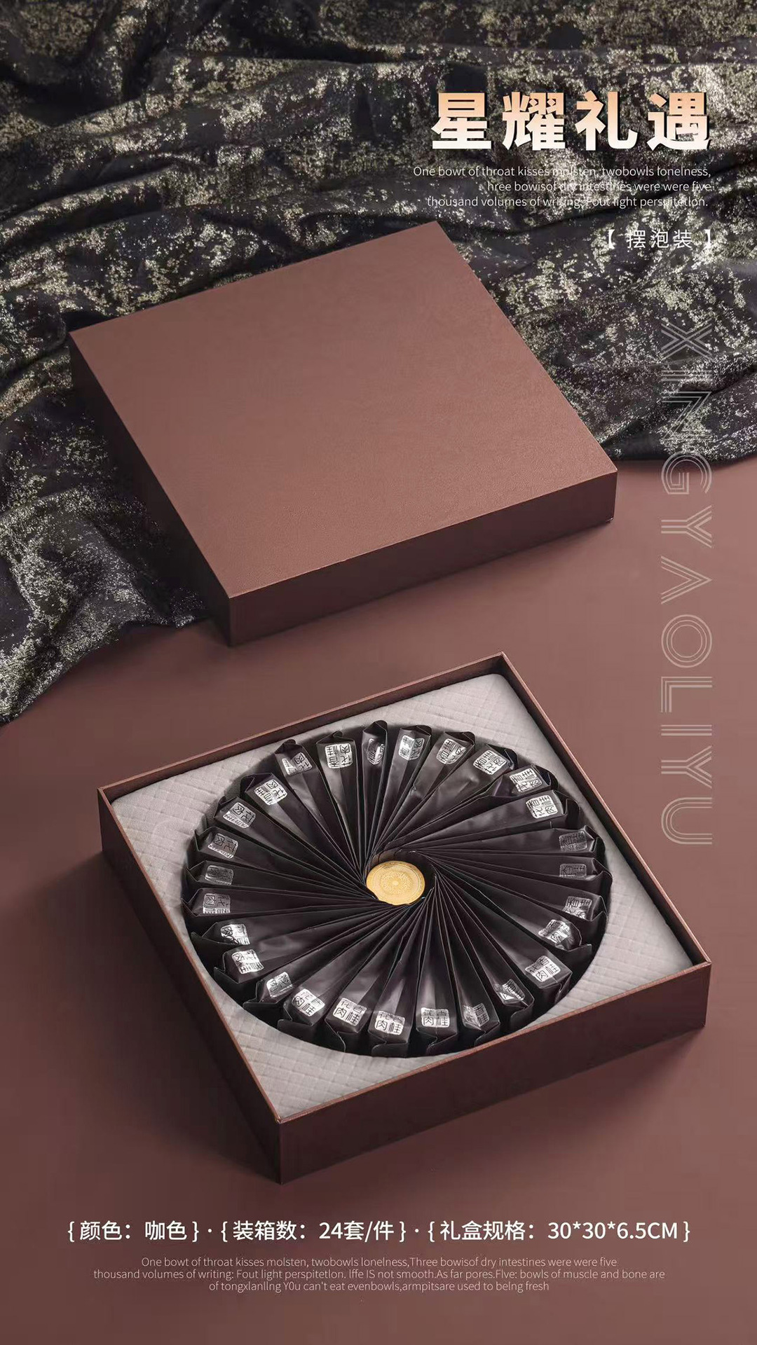 礼盒版面可定制成: 铁观音、大红袍、武夷肉桂、水仙、单丛、金骏眉、正山小种、绿茶、普洱茶、茉莉花茶、滇红茶、野生红茶等