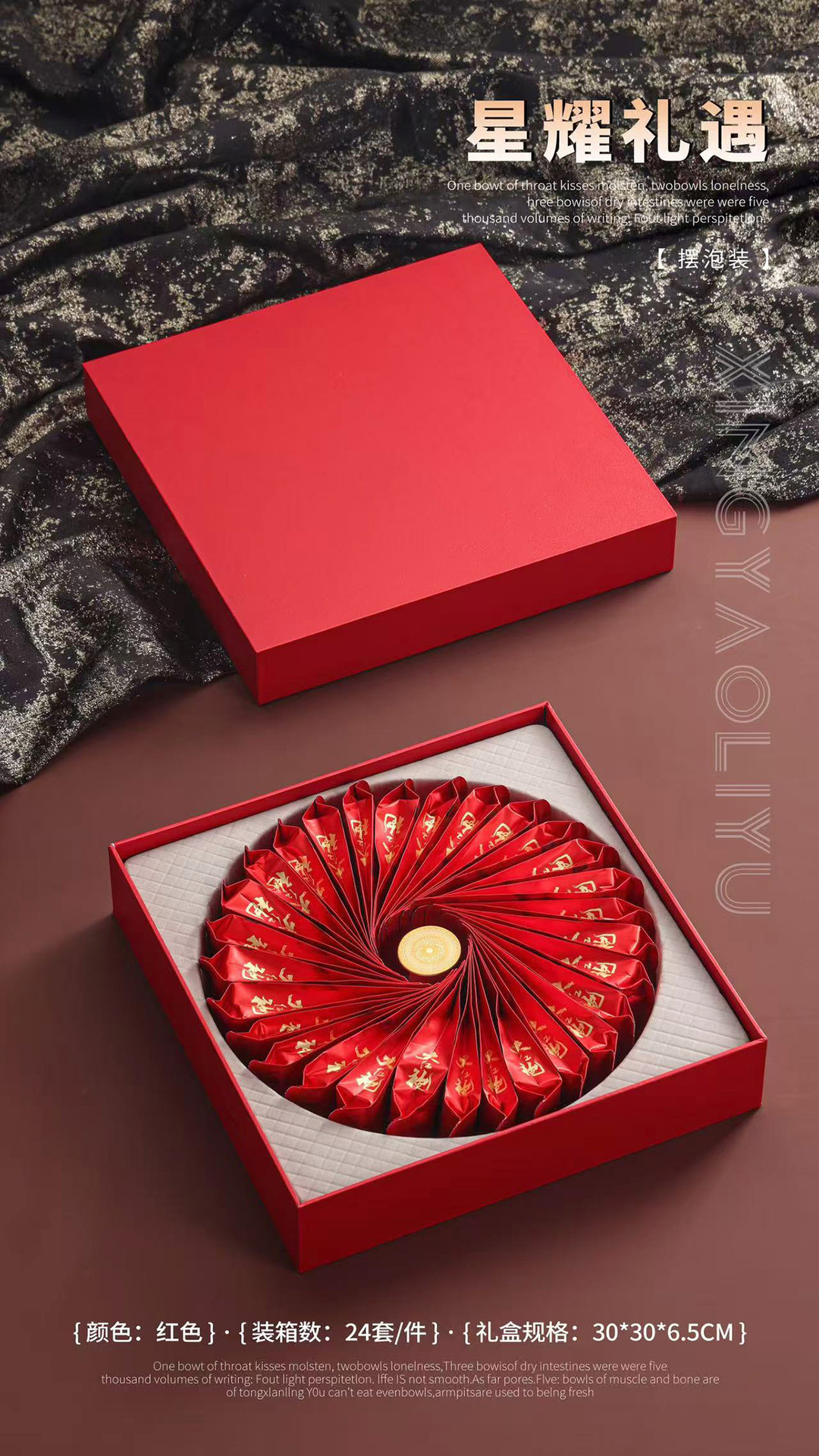 純色の泡袋の礼箱20/30は正山の小さい種の楚の赤い大きい赤い服の金の駿の眉を浸して箱のお茶の包装箱を並べます。