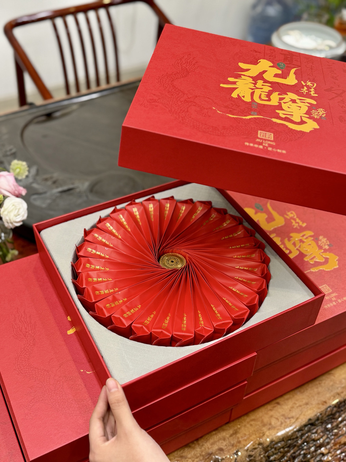 高档中秋大团圆茶包装盒空礼盒肉桂红茶大红袍长泡袋30长泡袋摆泡