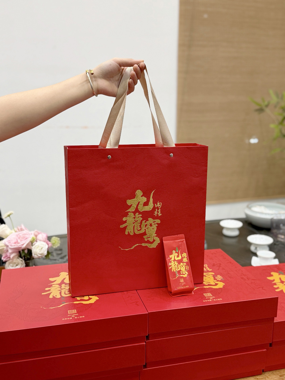 鳳凰単楓茶の包装箱の空きギフトボックスの岩茶は30泡半斤の赤い服の紅茶の現物を入れて卸売りします。