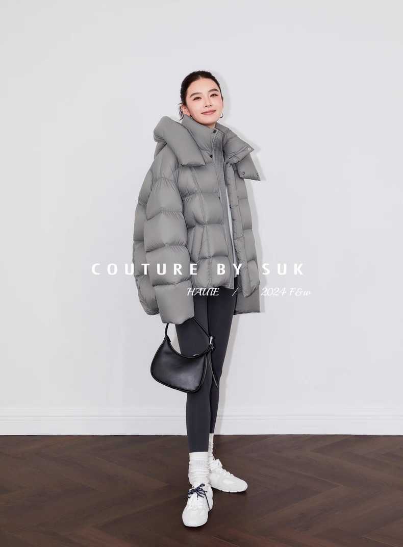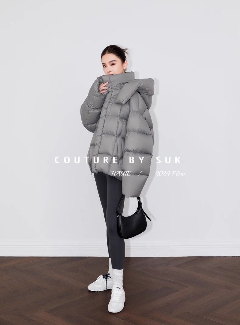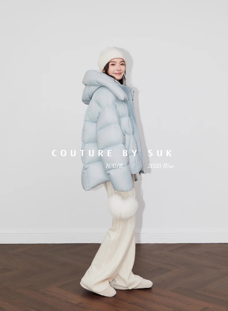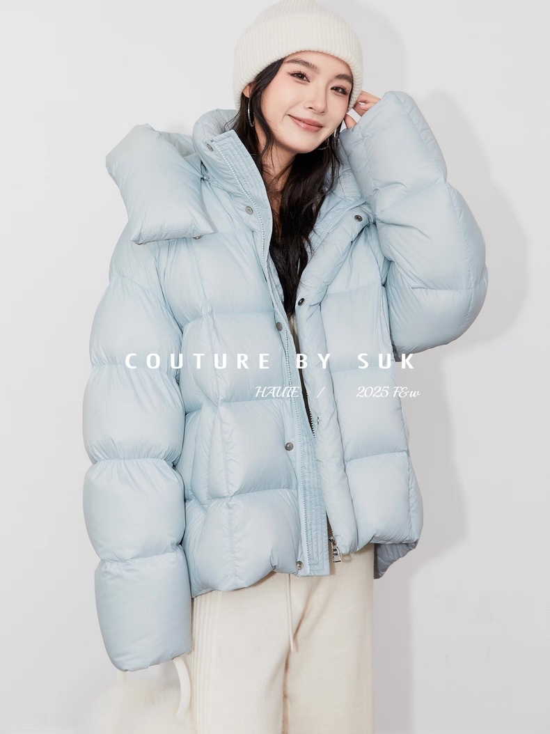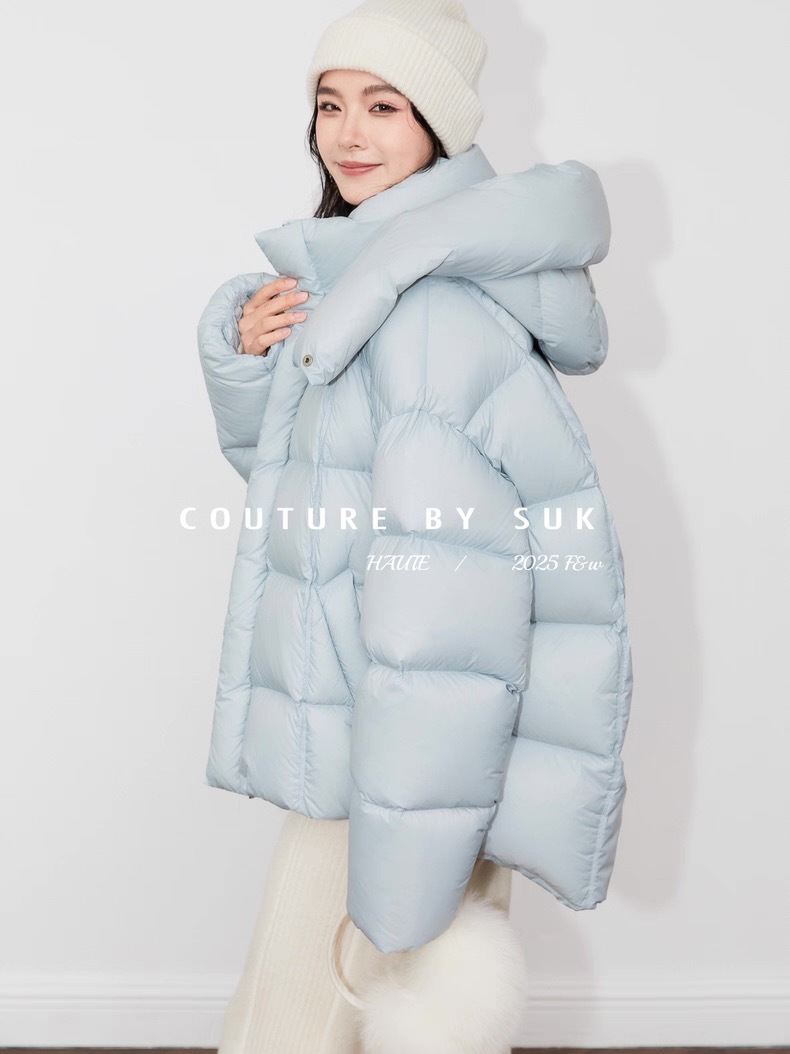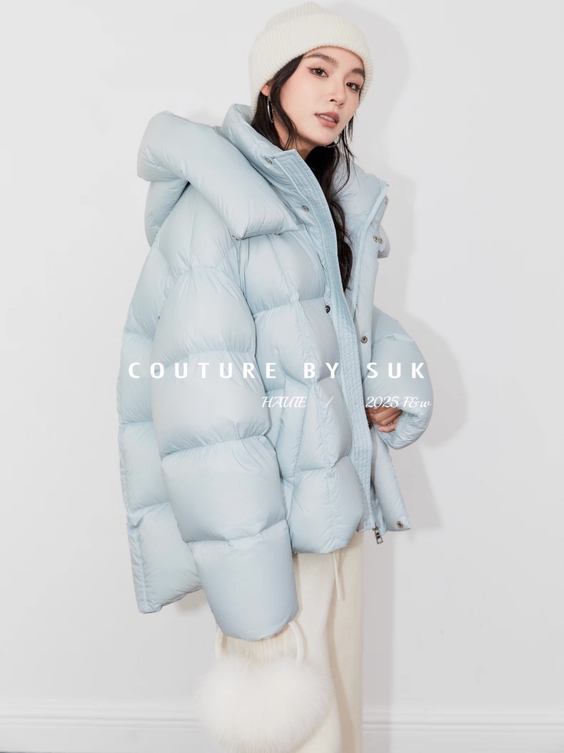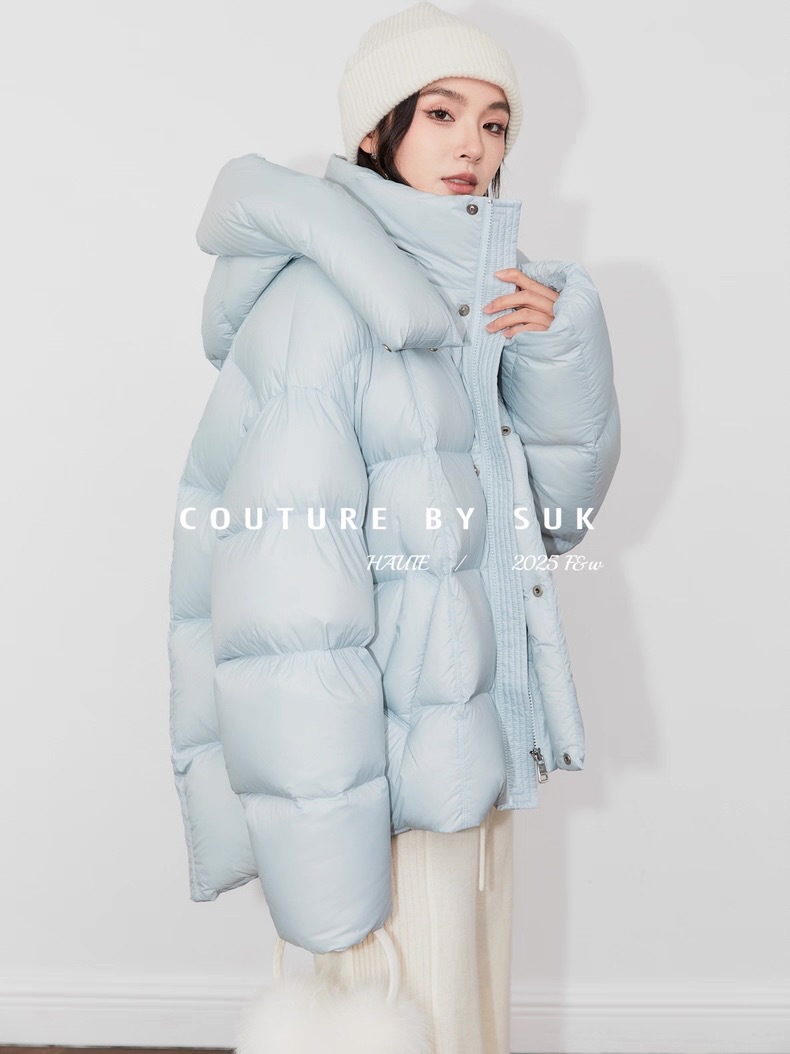 平湖羽绒服90白鹅绒2025冬新款连帽泡芙女中长款面包服加厚鹅绒服
