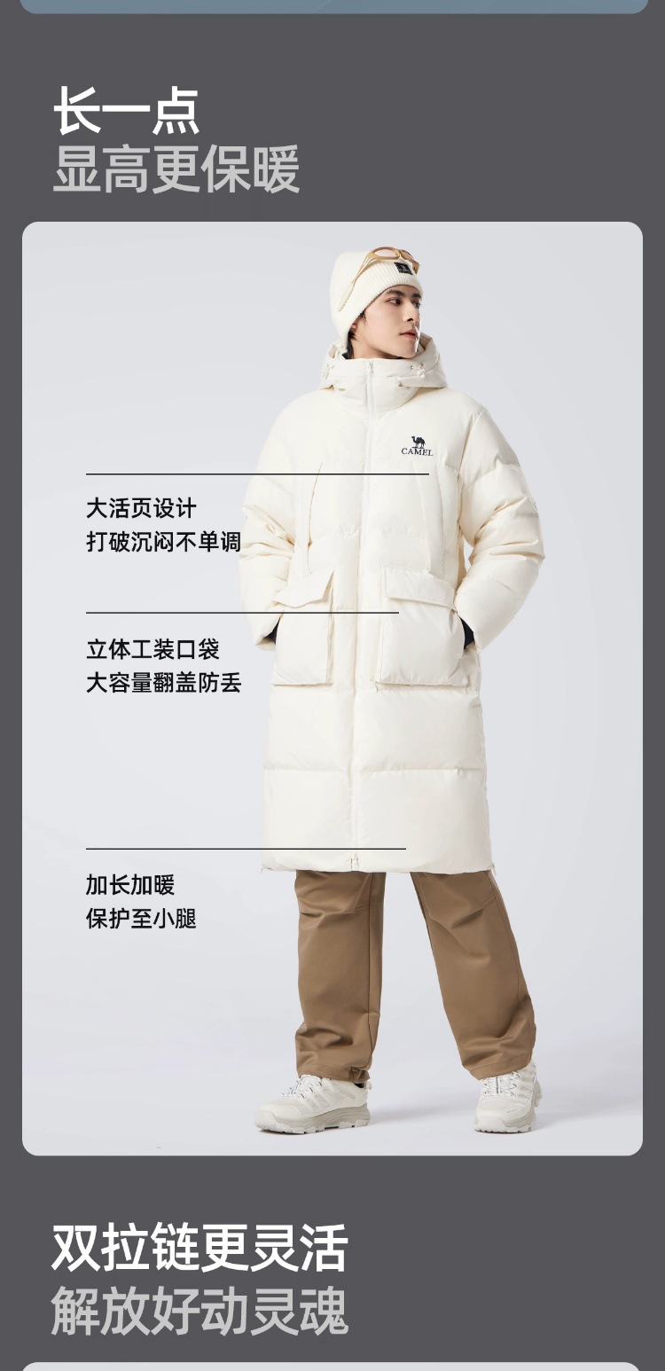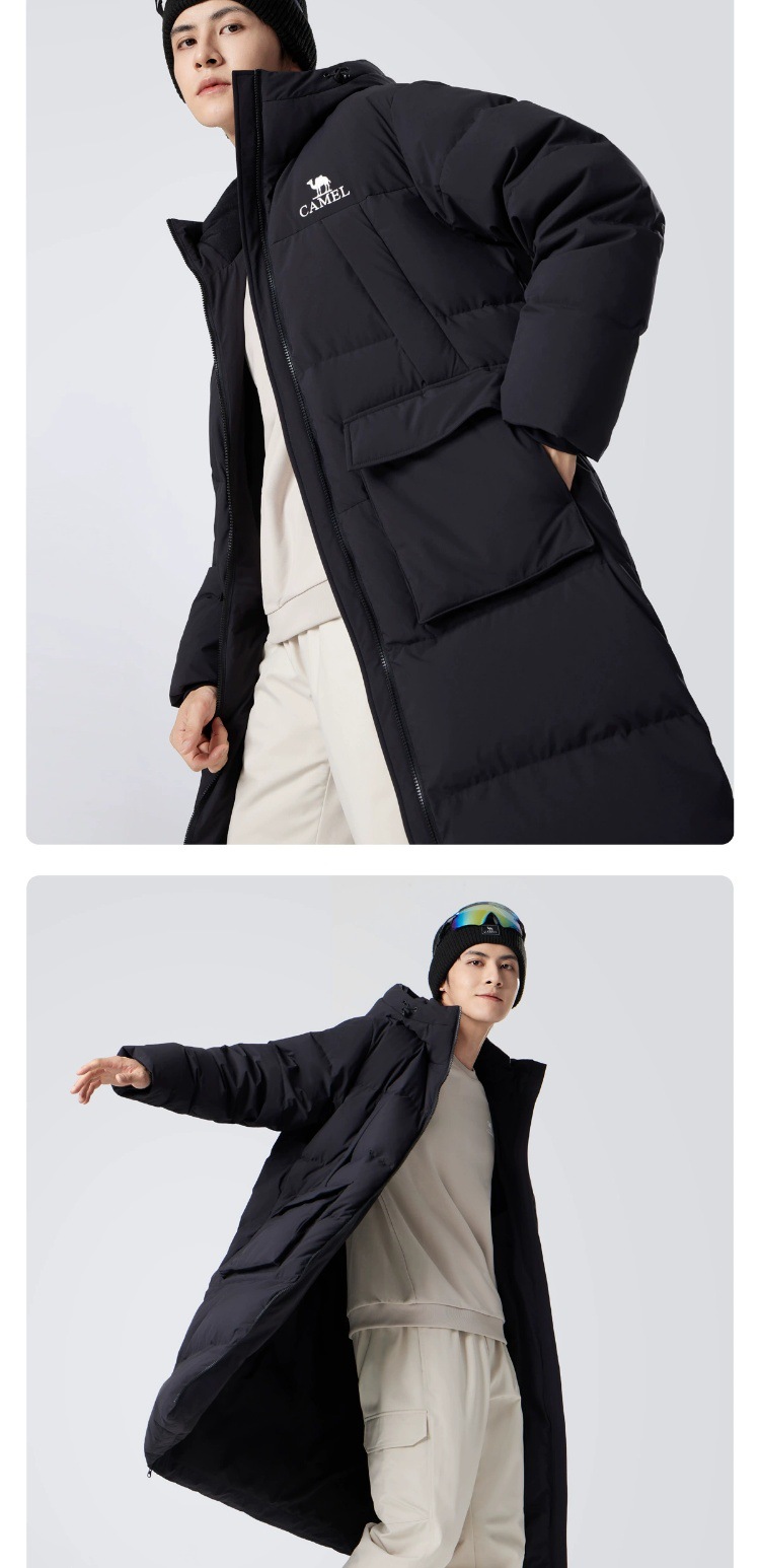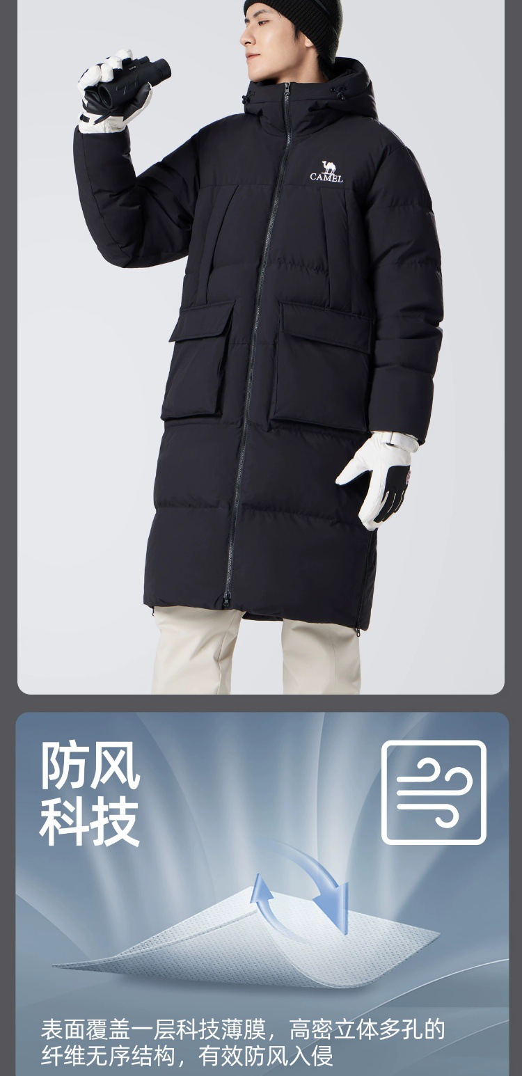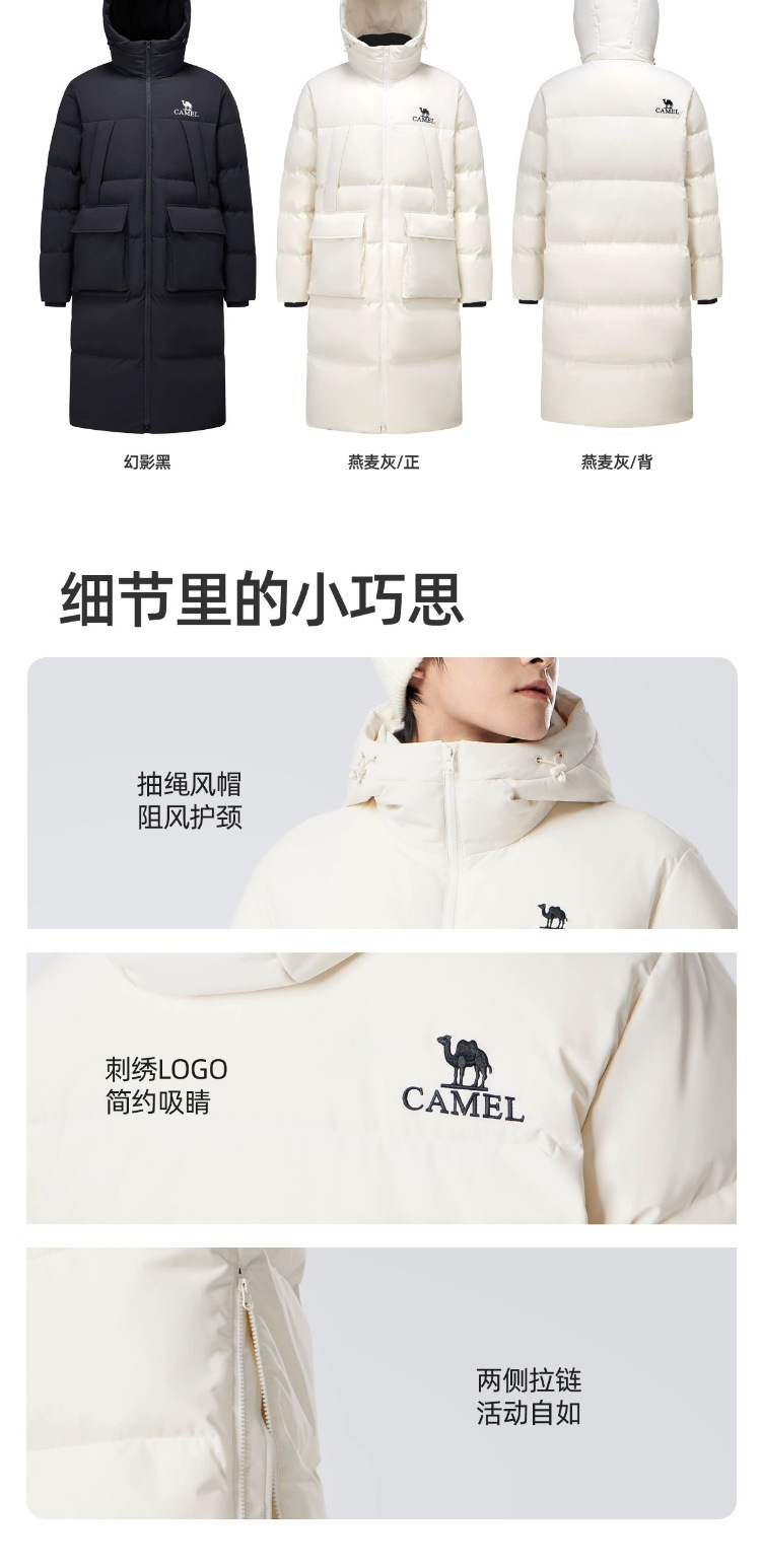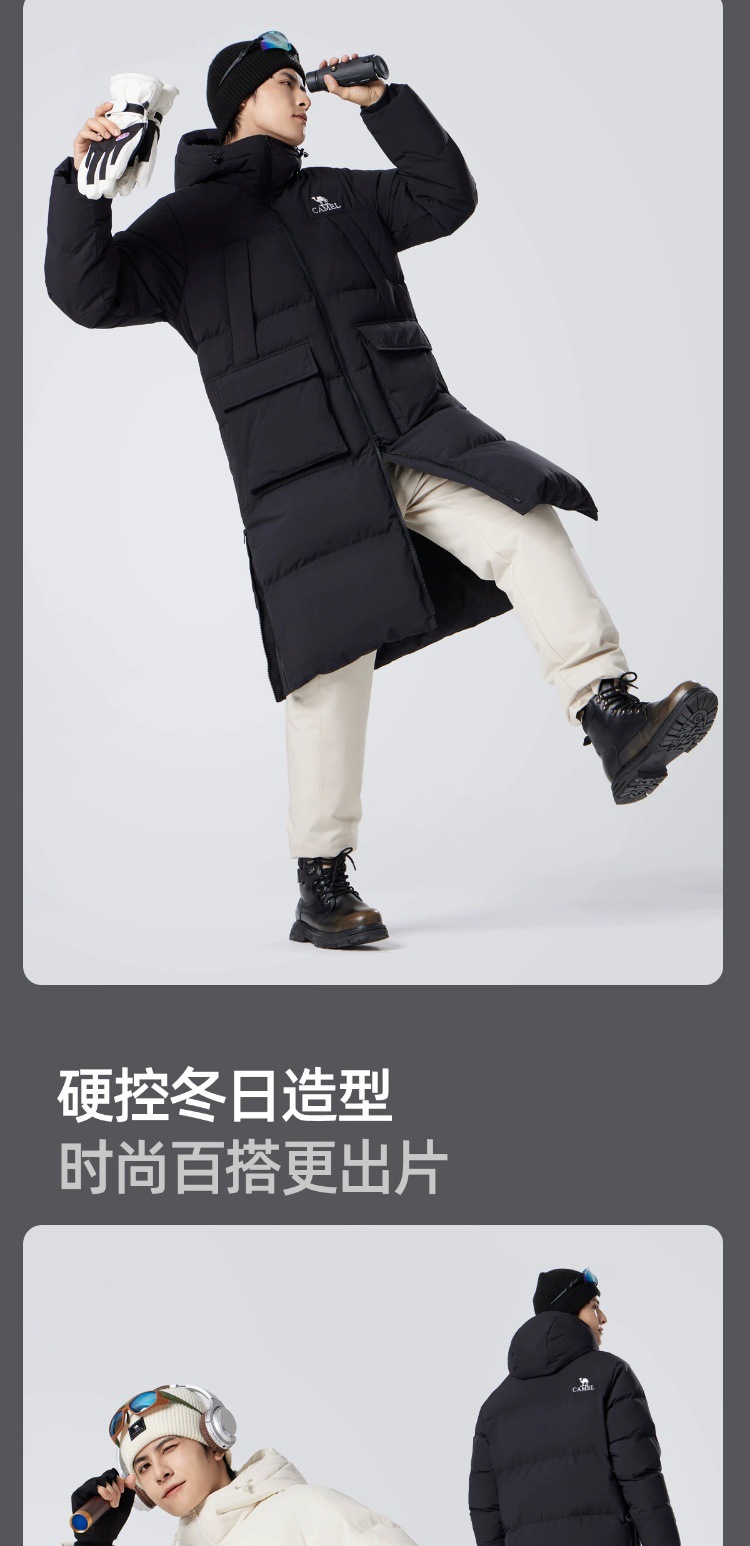 骆驼Camel长款羽绒服男冬季新款情侣三防连帽加厚保暖防寒外套女