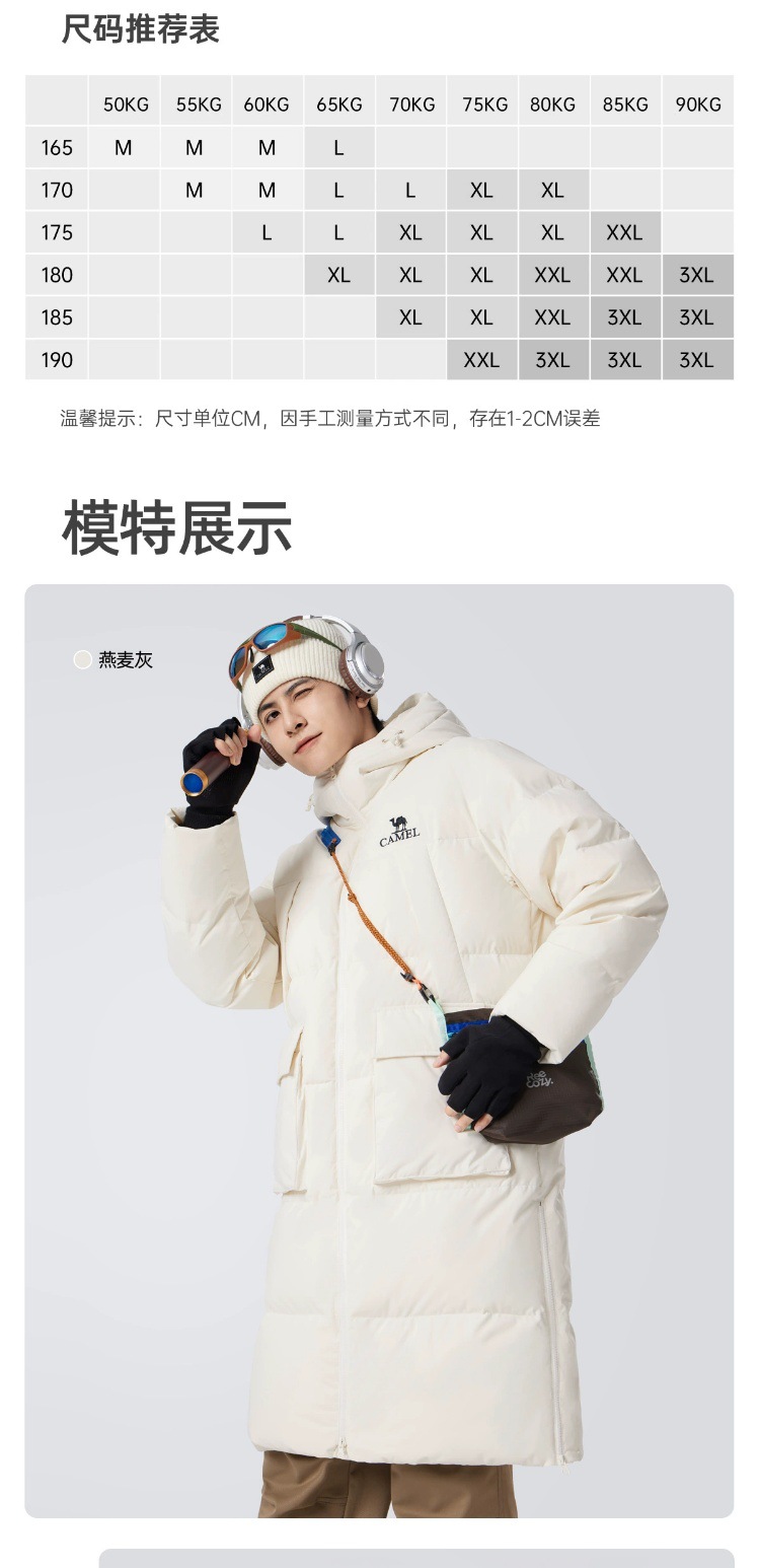 ラクダアウトドア三防ダウンジャケット25冬新作男女兼用ミドル丈ゆったりパンコート団体購入卸売