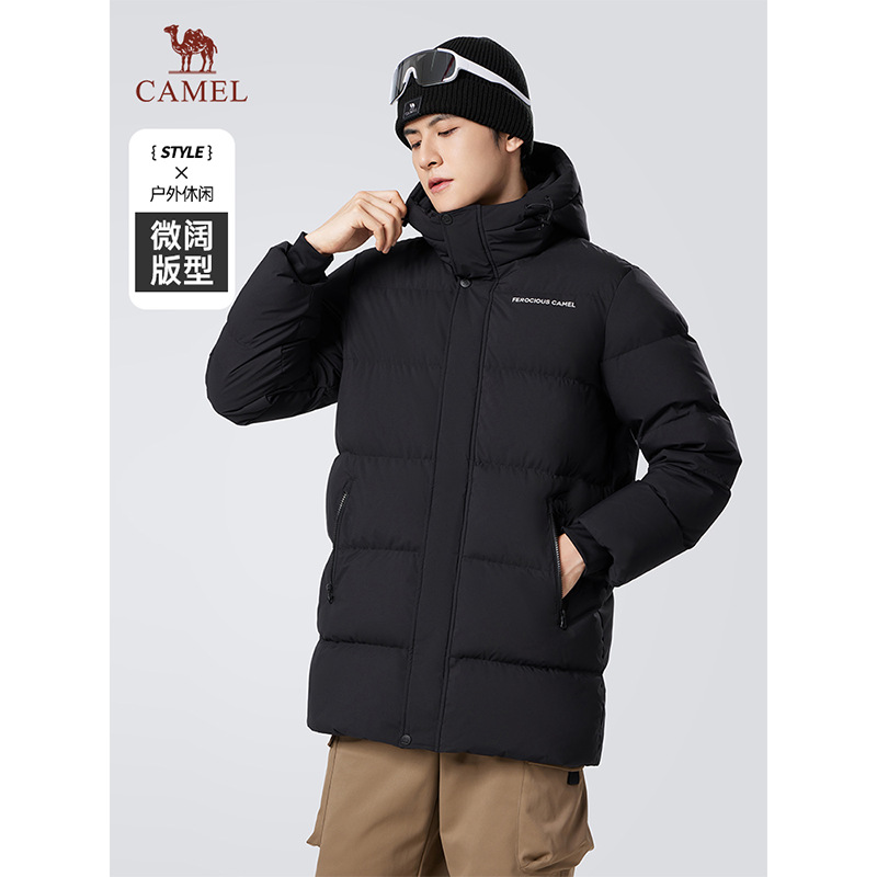 骆驼男装三防羽绒服男冬季2025新款中长款连帽加厚保暖爸爸外套女