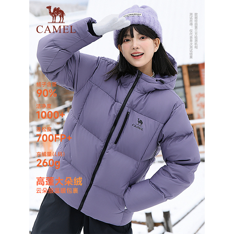 骆驼运动羽绒服情侣款女冬季紫色防泼水连帽保暖外套加厚面包服男