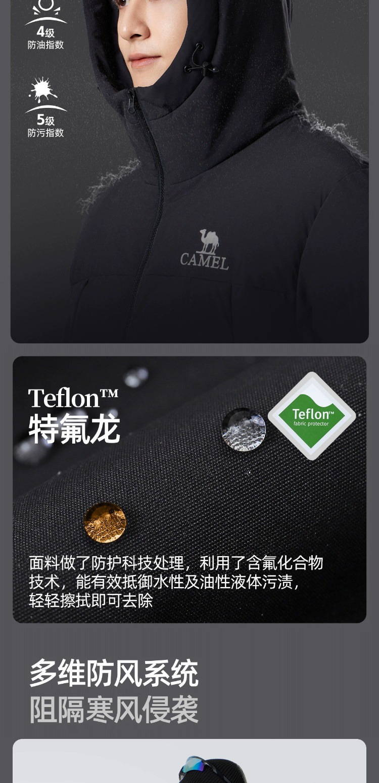 骆驼中长款羽绒服新男女同款秋冬季2025三防加绒加厚防寒保暖外套