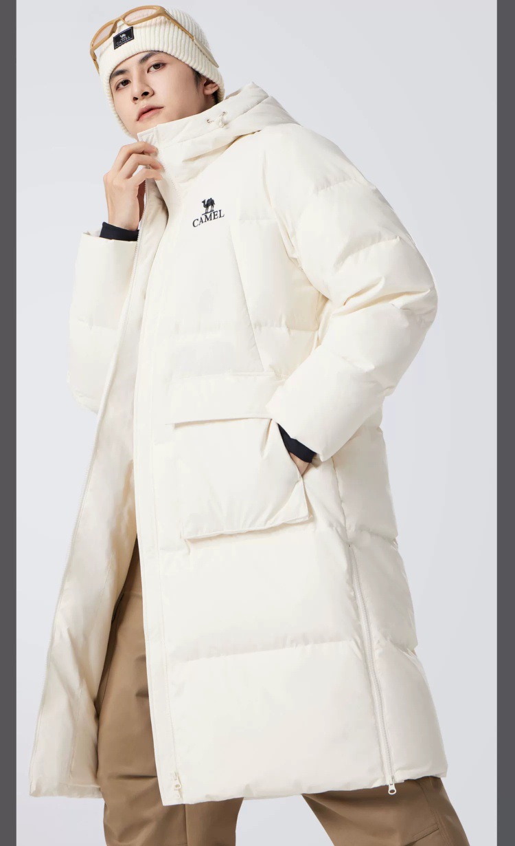 ラクダアウトドアダウンジャケット新作男女カップル同型撥水防風ロング丈膝丈アウトドアジャケット卸売